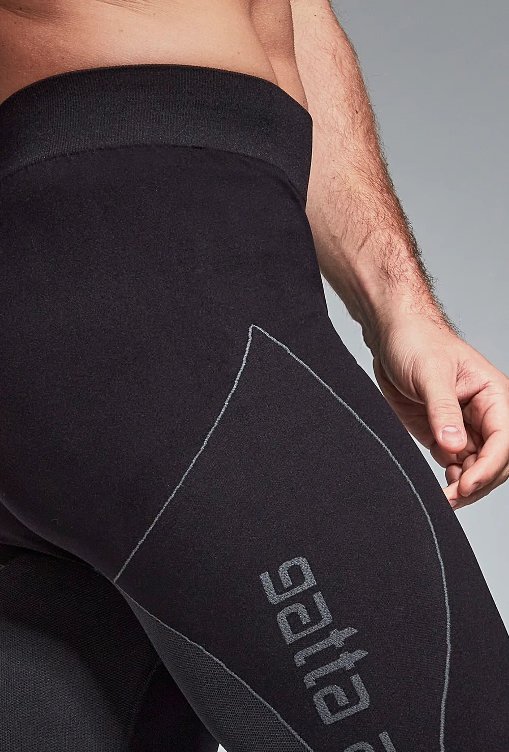 Produkty Gatta Active charakteryzuje nie tylko innowacyjny materiał, ale także nowoczesna budowa i wygląd. Męskie legginsy termoaktywne dzięki płaskim szwom oraz elastyczny ściągaczom nie ocierają ani nie krępują ruchów. Czarna dziania została dodatkowo wzbogacona ciemnoszarymi włóknami wspierającymi mięśnie w trakcie wysiłku. Męskie legginsy termoaktywne Peak to numer jeden w garderobie każdego mężczyzny aktywnego fizycznie. W sklepie online Gatta znajdziesz je w rozmiarach od S do XXL.