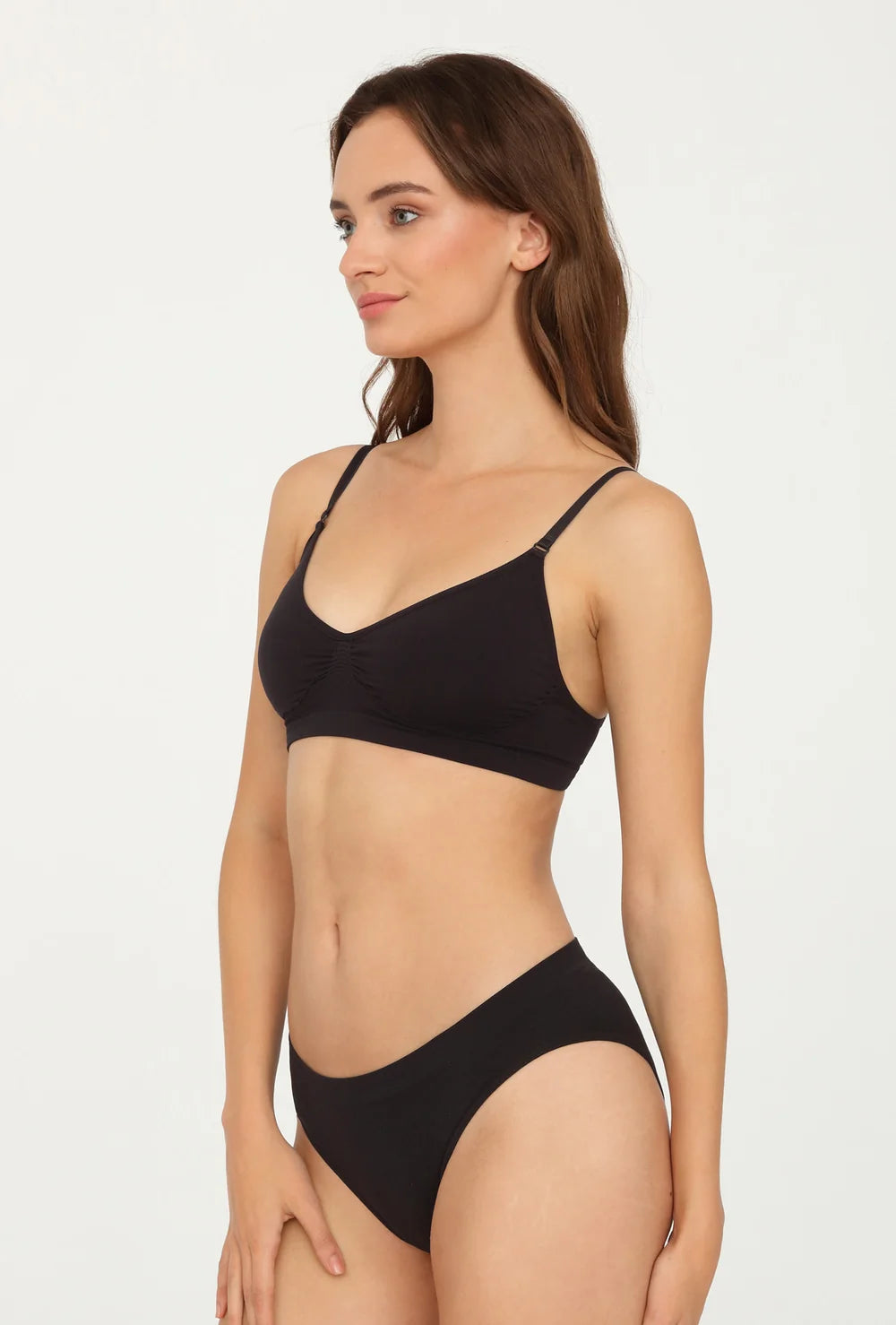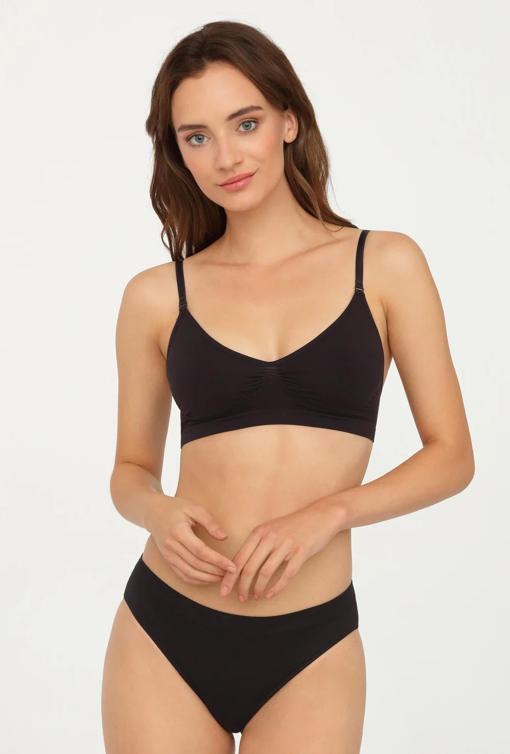 Miękka konstrukcja biustonosza BRA PERFECT decyduje o najwyższym standardzie komfortu. Bielizna pozbawiona jest fiszbin oraz innego typu usztywnień i delikatnie opada na ciało. Odpowiednie podtrzymanie piersi gwarantuje elastyczny, efektownie wszyty pas gumy pod biustem, trzystopniowe zapięcie oraz regulowane ramiączka. Dla tego modelu charakterystyczny jest wykrój miseczek. Subtelne marszczenie w przedniej części oraz całkowicie miękkie miseczki sprawiają, że bielizna ma dużą tolerancję na zmianę wielkości biustu. Model doskonale sprawdza się przy każdej sylwetce, zapewniając wszystkim kobietom swobodę ruchów i świetne samopoczucie.