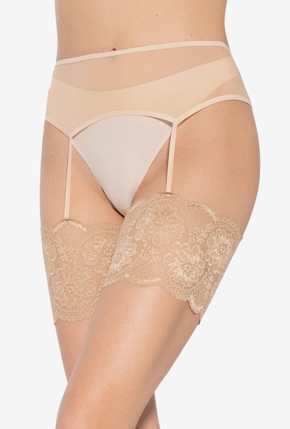 Wykonane z elastycznej koronki, połączone zostały cienkimi paskami z przewiewnym pasem z delikatnej siateczki. Nowoczesna budowa szortów przeciw otarciom typu strip panty nie wymaga zastosowania silikonu od wewnętrznej strony w strefie koronkowej. Takie rozwiązanie technologiczne zapobiegnie wszelkim niepożądanym podrażnieniom oraz odparzeniom.