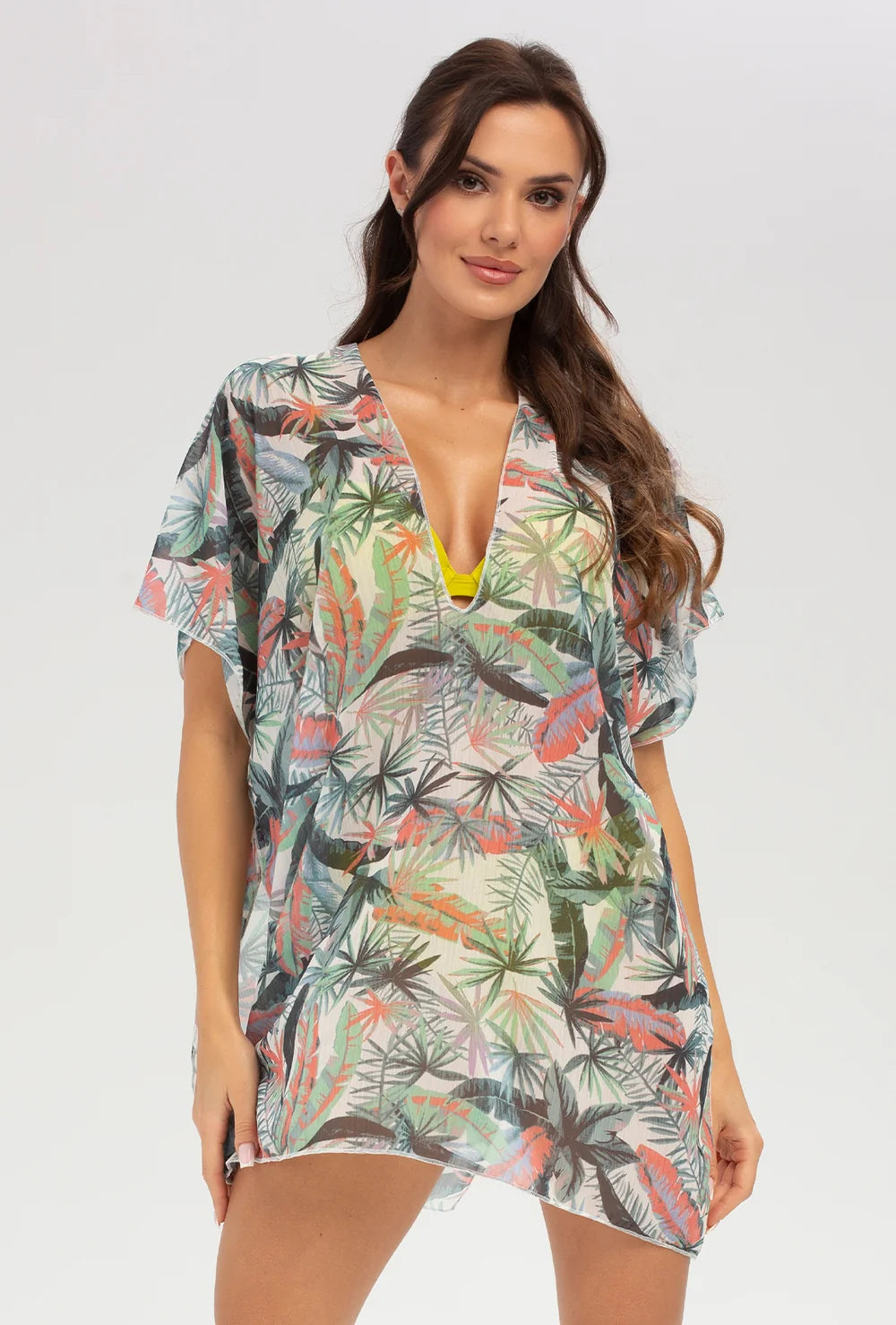 Szukasz narzutki, którą okryjesz ciało podczas spaceru na plażę lub ochronisz skórę przed promieniami słońca w trakcie plażowania? Pareo plażowe z egzotycznym wzorem Amber marki Gatta sprawdzi się idealnie w obu rolach! Ten model pokochasz przede wszystkim za kolorowy wzór, który od razu wprawia w wakacyjny nastrój. Narzutka jest lekka, zwiewna, posiada kimonowe rękawy, głęboki dekolt i wycięcia, które zmysłowo eksponują nogi. W sklepie online Gatta naszą tunikę plażową znajdziesz w jednym, uniwersalnym rozmiarze, który pasuje na różne typy sylwetek.
