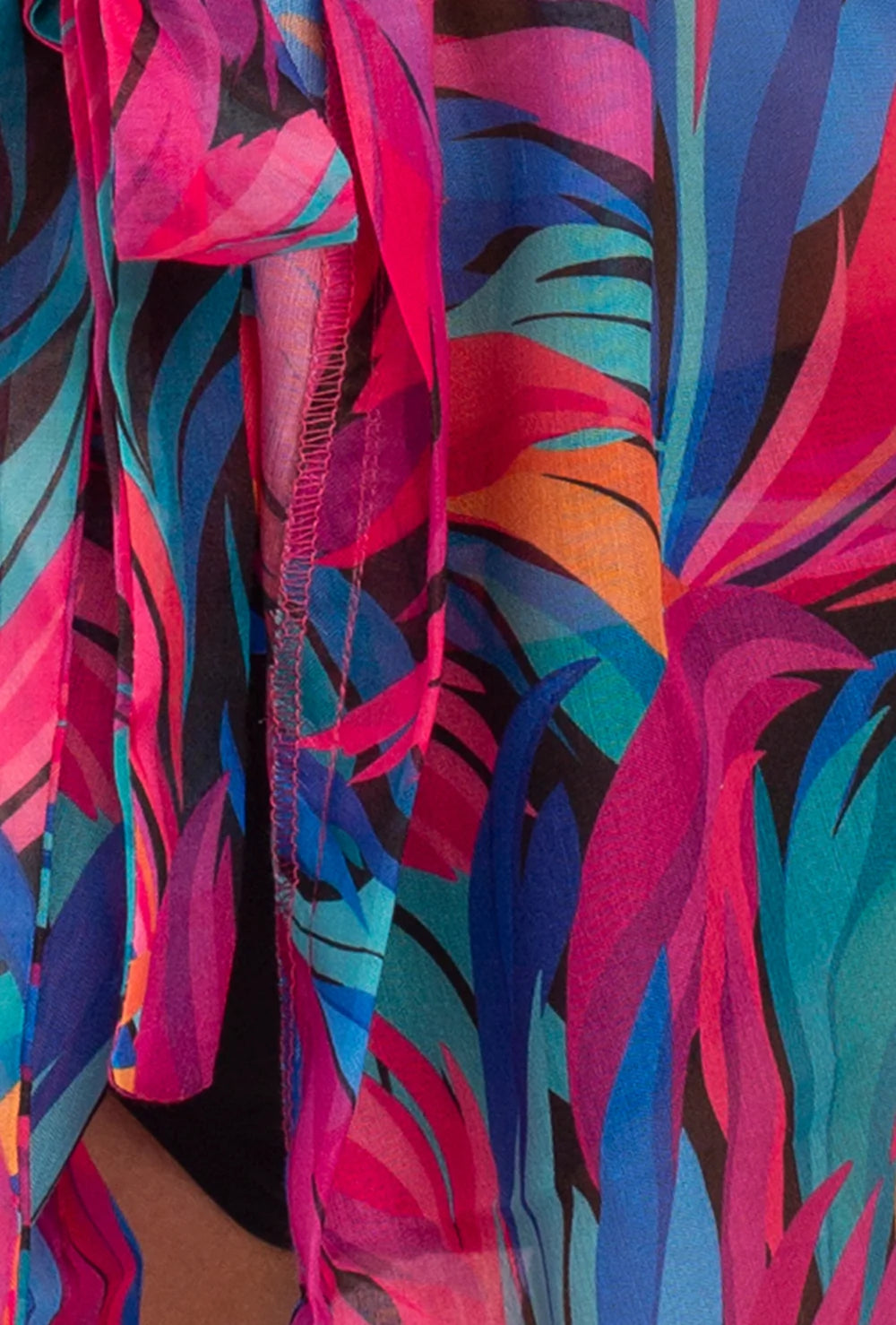 Pareo Marmaris zachwyca soczystymi odcieniami i typowo letnią estetyką. Zostało wykonane z bardzo cienkiego i zwiewnego materiału. Możesz wykorzystać je nie tylko w plażowych zestawieniach, ale również jako narzutkę w domowych stylizacjach.