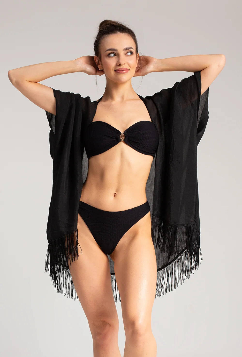 Niezależnie od tego, czy pragniesz podążać za modowymi trendami, czy zależy Ci na wygodzie i funkcjonalności, pareo plażowe Stephanie na pewno spełni Twoje oczekiwania. Produkt dostępny jest w dwóch klasycznych kolorach: bieli i czerni. Którą wybrać? Wersja biała pareo Stephanie wręcz idealnie komponuje się z letnią opalenizną. Czarna odsłona dodaje elegancji każdej stylizacji. Te kolory nigdy nie wychodzą z mody! Ażurowe wykończenie na plecach zapewni Twojej skórze uczucie chłodu, doda sylwetce delikatności, a samemu produktowi - lekkości i subtelności.