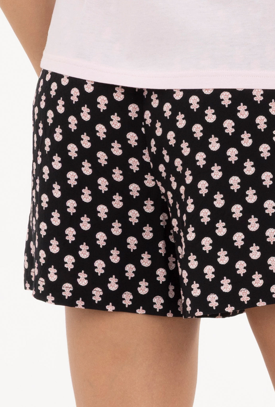 Spodenki z elastyczną gumką w pasie zostały ozdobione wesołym wzorem, który świetnie komponuje się z gładką górą. Miękki i przewiewny materiał sprawia, że piżama doskonale sprawdza się zarówno latem, jak i podczas relaksu w domowym zaciszu.