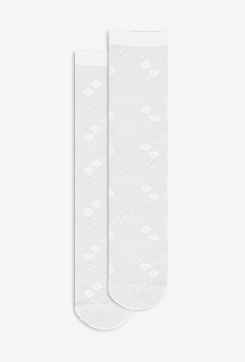 W garderobie młodej damy z całą pewnością przydadzą się komfortowe i estetyczne podkolanówki. Model Alice 11 zwraca na siebie uwagę bardzo subtelnym wzorem kwiatowym. Podkolanówki te są utrzymane w białym kolorze, ale mają transparentny charakter - będą idealnym wyborem do wiosennych i letnich strojów.