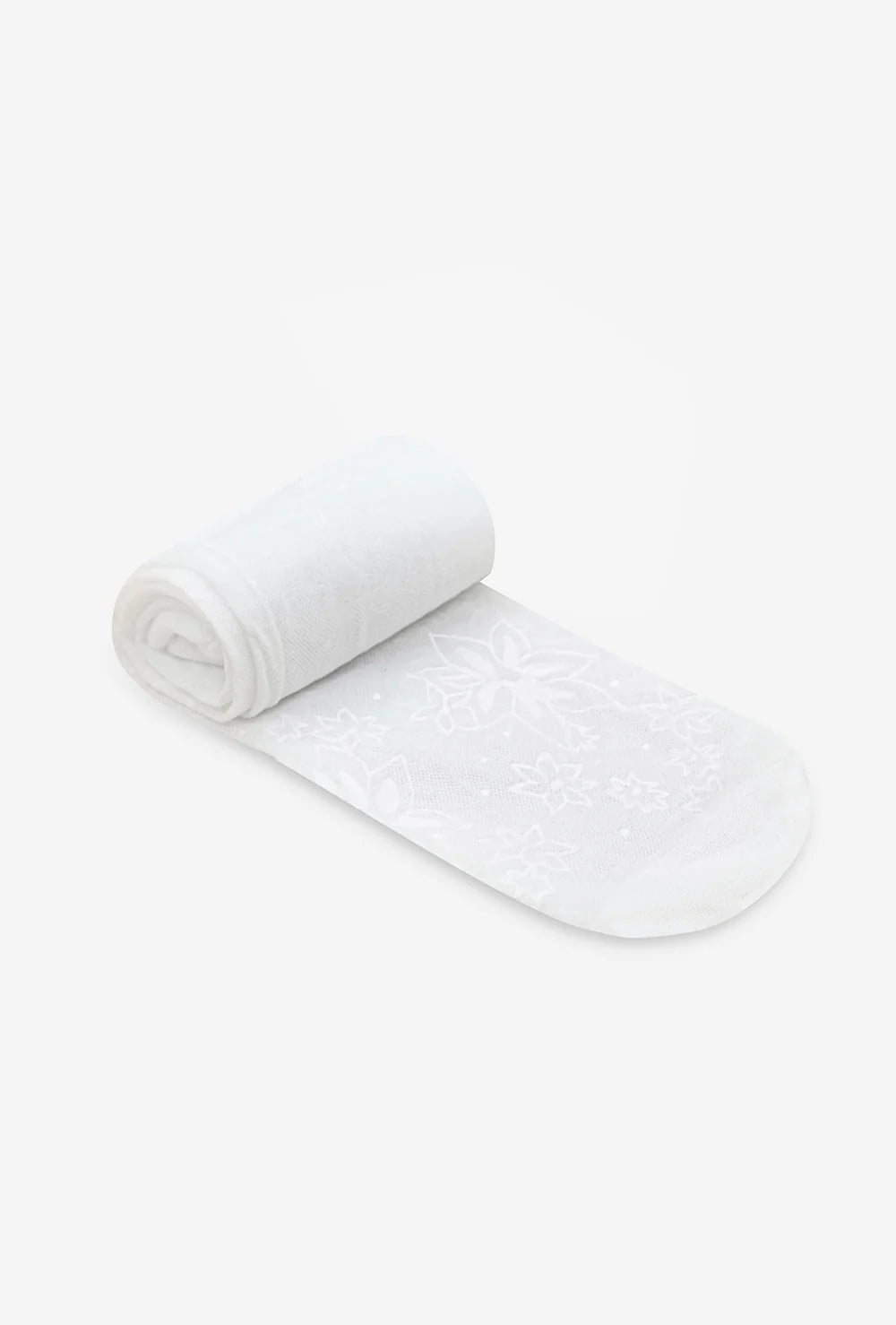 To nie są kolejne białe podkolanówki dziecięce, jakich wiele. To wyjątkowa opcja dla dziewcząt, które przepadają za kwiatowymi wzorami. Podkolanówki Alice wz. 12 od razu zwracają uwagę swoim ciekawym, a jednocześnie dyskretnym wzornictwem - ich powierzchnię pokrywa kwiatowy deseń, który jednak jest bardzo delikatny.