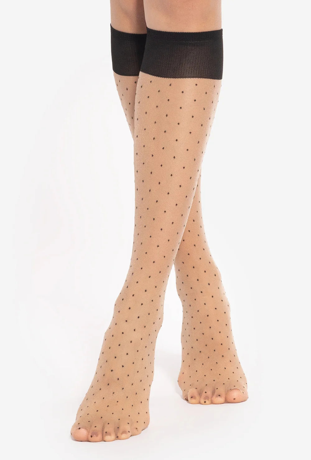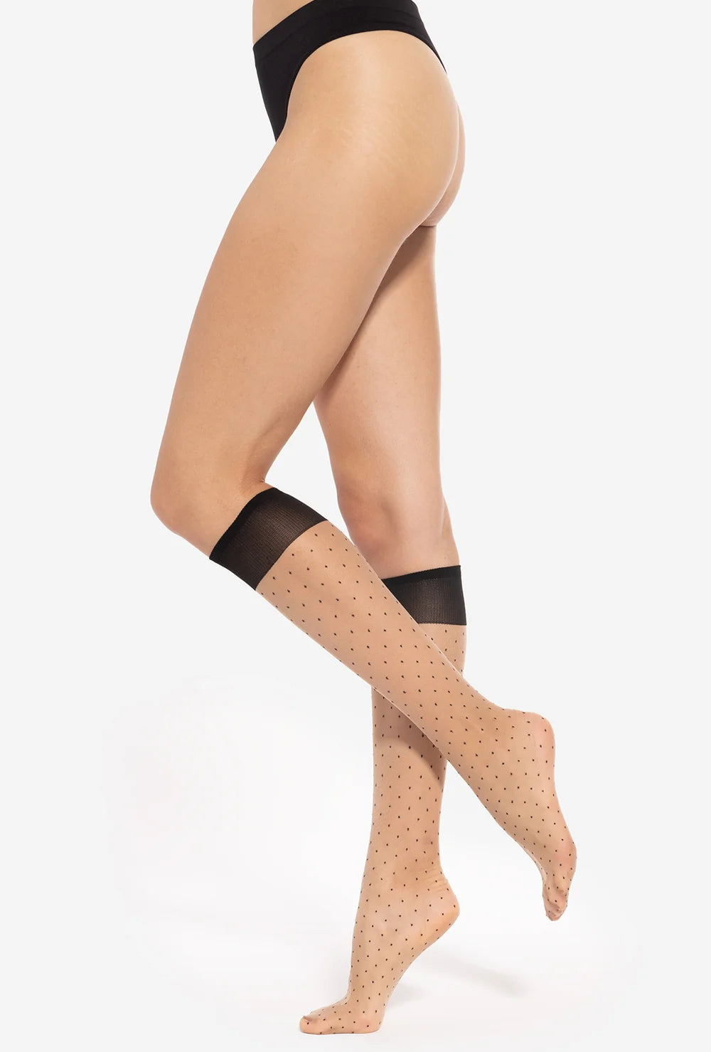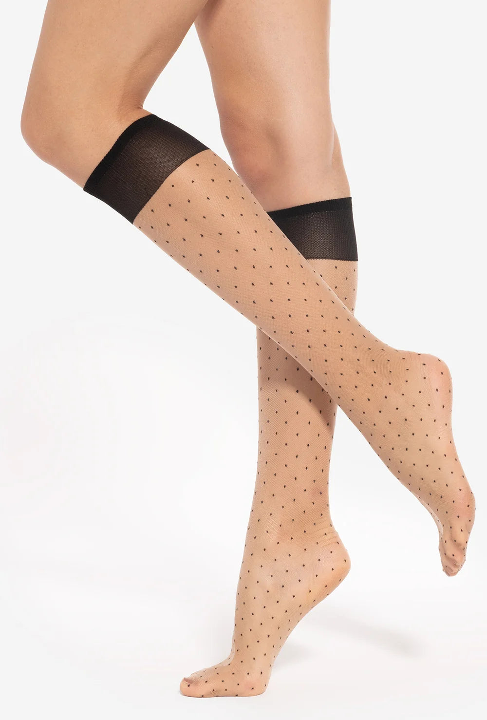 Szukasz sposobu na nadanie Twoim codziennym stylizacjom niecodziennego charakteru? Co powiesz na urozmaicenie ich ciekawym dodatkiem, jakim są... podkolanówki? Cienkie podkolanówki Stylove o grubości 20 DEN od marki Gatta sprawdzą się w tej roli idealnie! Minimalistyczny wzór w czarne, drobne kropeczki obroni się zawsze, niezależnego od tego, czy będziesz kompletować strój na uczelnię, do pracy, czy na kawę z przyjaciółką. Nasze wzorzyste podkolanówki czekają na Ciebie w sklepie online Gatta w jednym, uniwersalnym rozmiarze, który idealnie dopasuje się do Twoich nóg. Przekonaj się o tym osobiście!