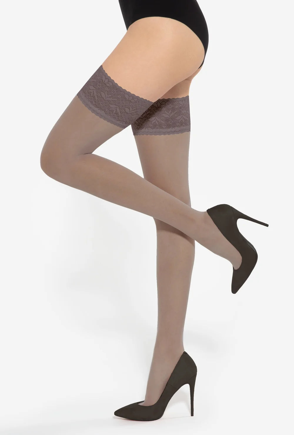 Zmysłowe pończochy samonośne Michelle to kobiecy model od marki Gatta. Kolekcja Michelle to linia inspirowana klasyką kanonu eleganckiego pończosznictwa. Stanowi idealne dopełnienie zarówno stroju biznesowego, jak i wieczorowej kreacji.