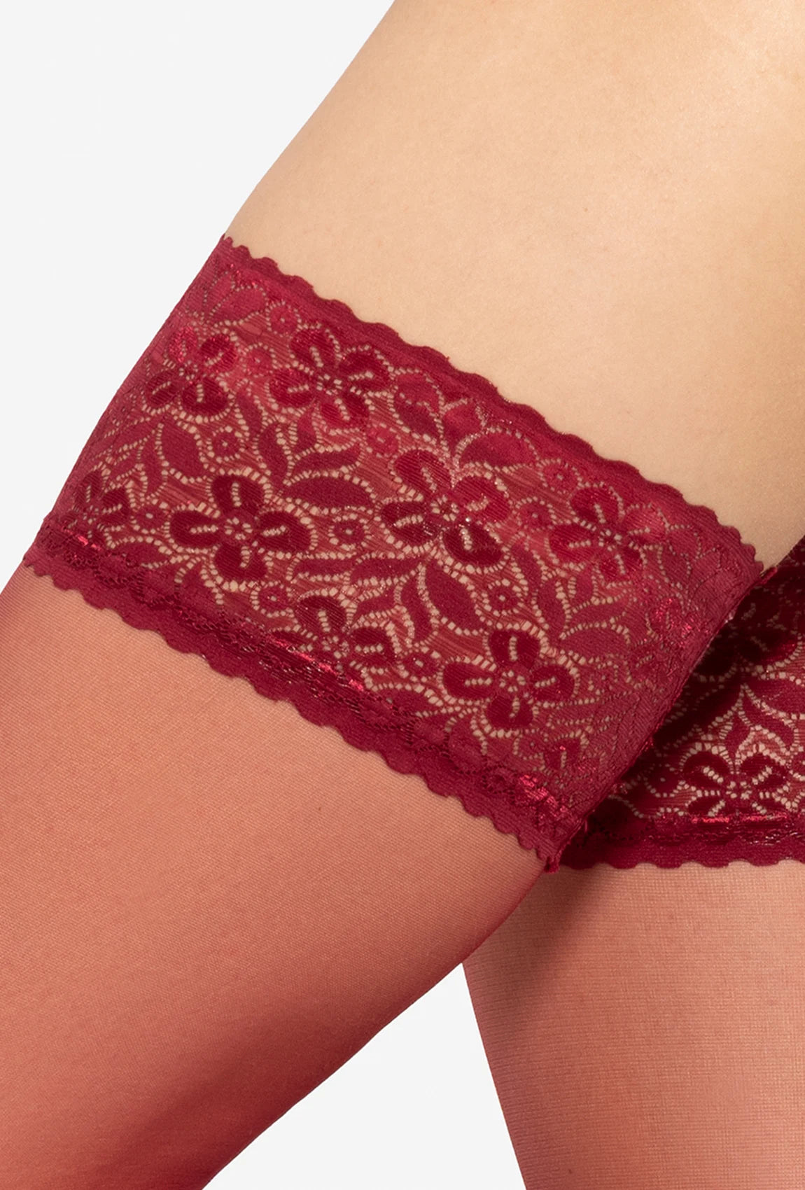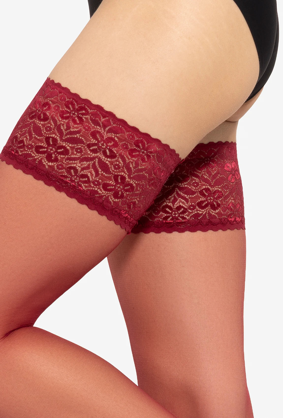 - Praktyczne i delikatne, silikonowe paski stanowią gwarancję niezawodności pończoch samonośnych. Bardzo dobrze przylegają do ciała. Dzięki ich zastosowaniu materiał nie zsuwa się, ani nie marszczy. Silikonowe paski zostały zamaskowane szerokim paskiem dekoracyjnym - ze zmysłowej koronki.