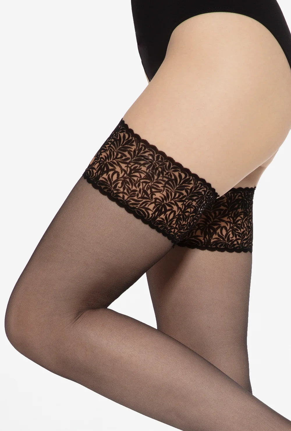 - Pończochy zostały wykonane ze sprężystej i miękkiej przędzy LYCRA®, która idealnie otula ciało tworząc na jego powierzchni sensualną, delikatną mgiełkę, która zmysłowo zarysowuje kształt nóg wysmuklając je optycznie.
