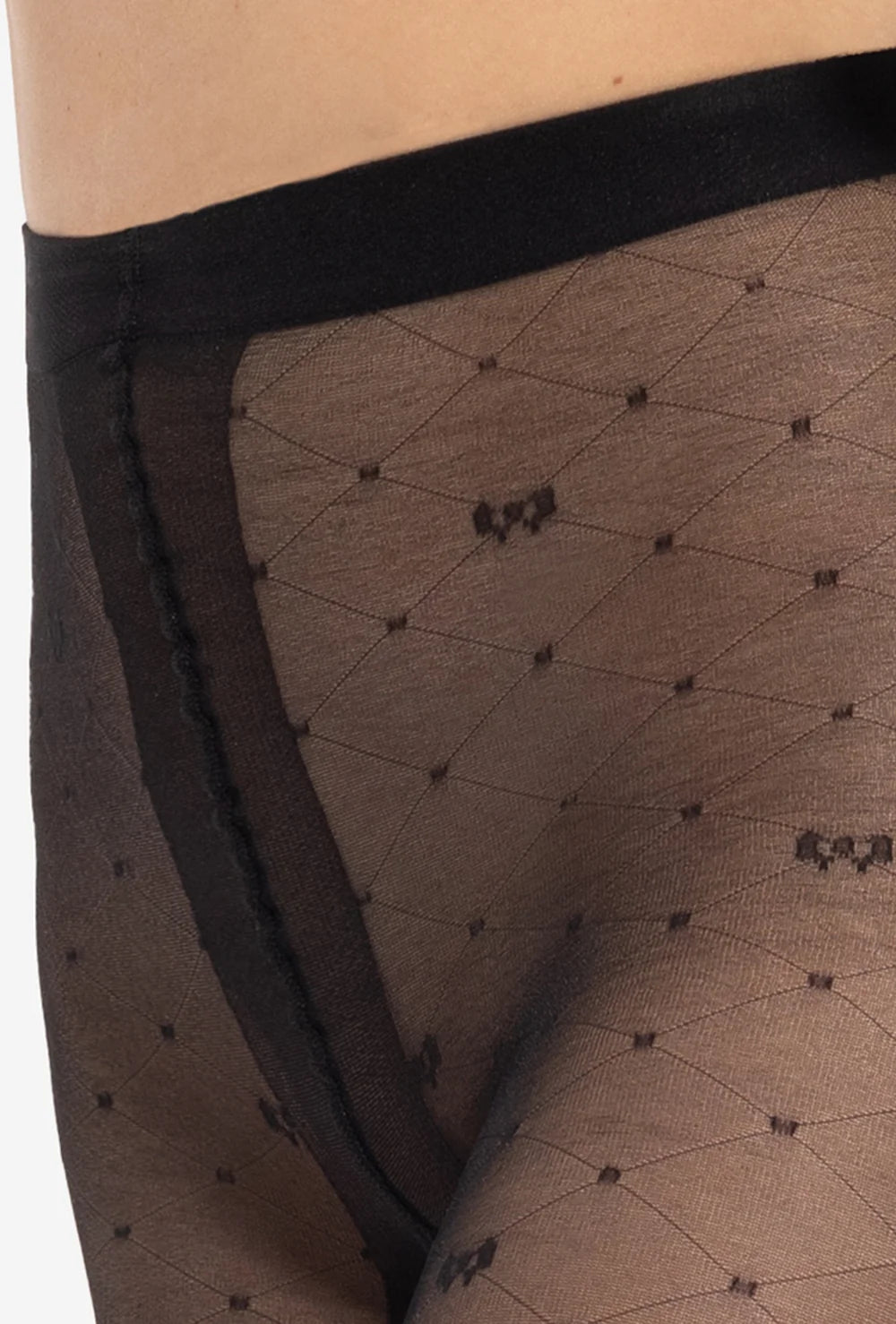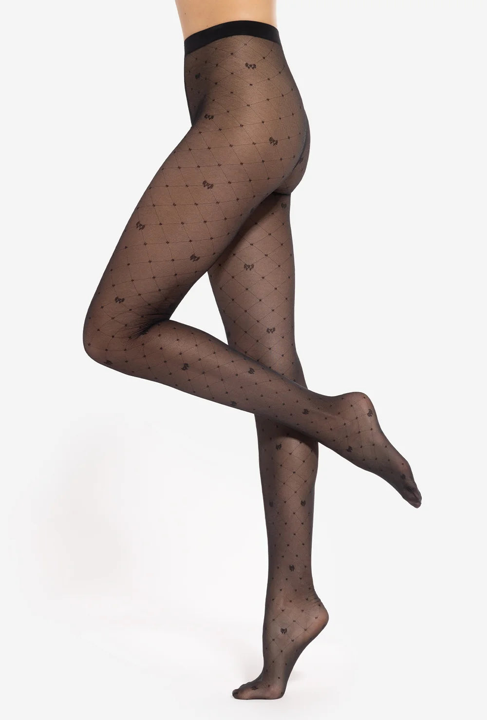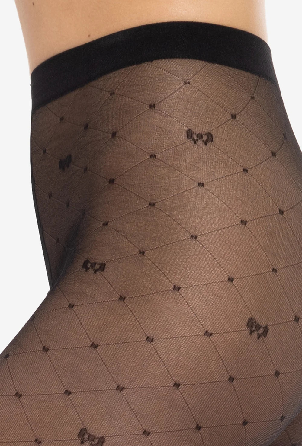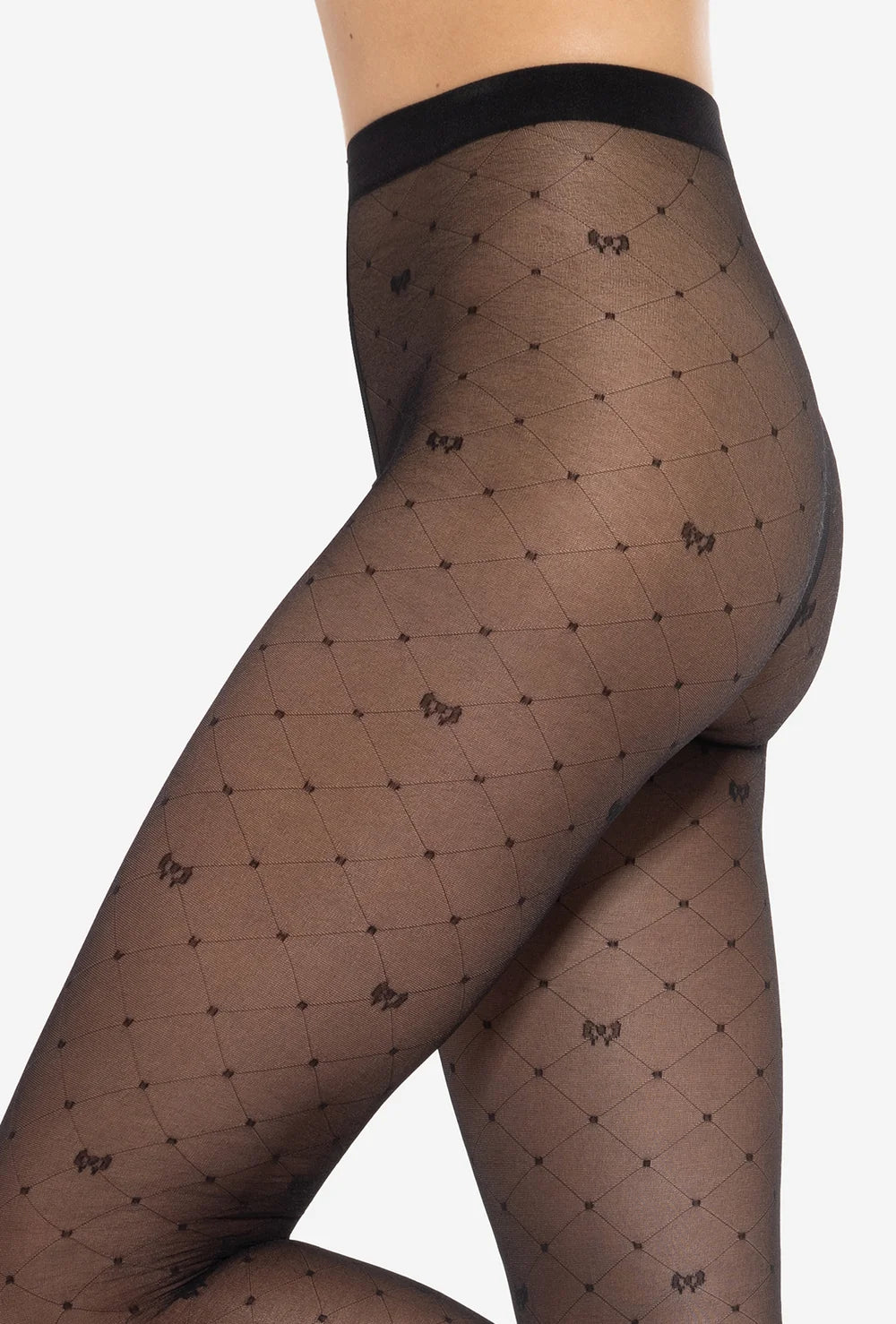 Czarne rajstopy damskie Royale 03 od marki Gatta to model, który od razu wpada w oko - wszystko to za sprawą transparentnego charakteru i efektownego wzoru w karo i małe kokardki. Delikatny deseń i neutralna kolorystyka czynią te rajstopy idealnym dopełnieniem codziennych i okolicznościowych stylizacji.