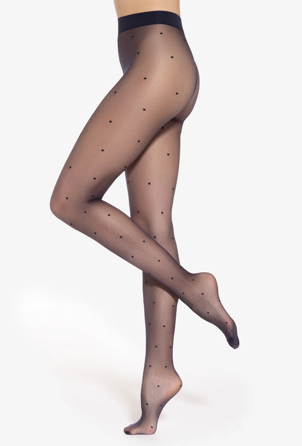 - Stylowe rajstopy Dotsy to model wykonany z największą starannością i dbałością o szczegóły. Dzięki wykorzystaniu najwyższej jakości przędzy LYCRA®, możesz z łatwością cieszyć się ich perfekcyjnym dopasowaniem do Twoich nóg bez niechcianych marszczeń i zagnieceń.