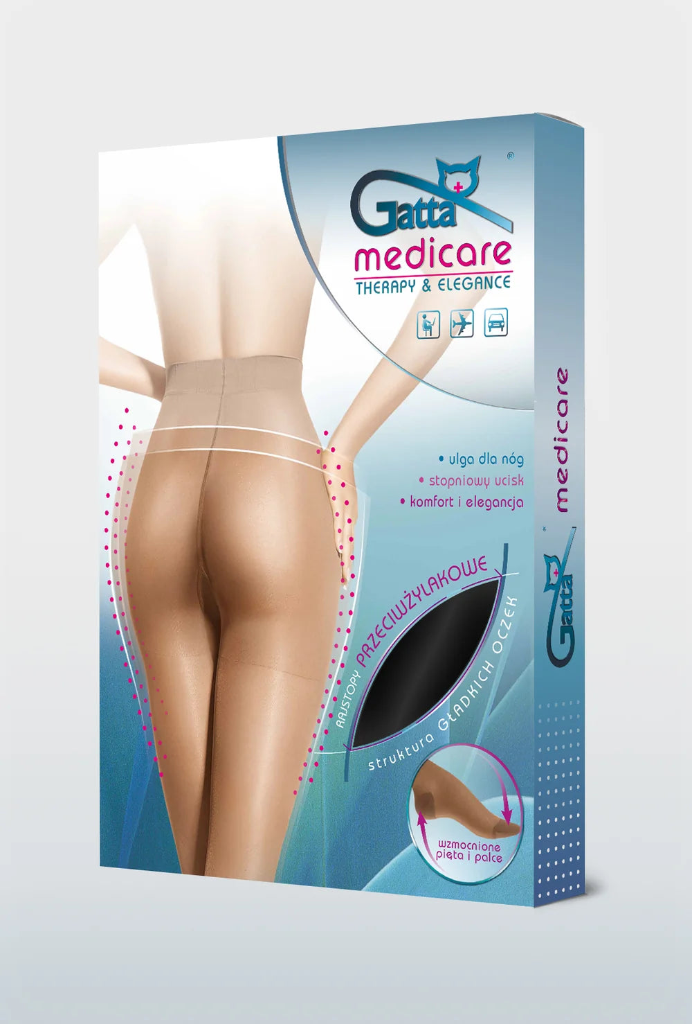 Rajstopy Medicare 140 DEN w kolorze Nero to model o zwartej, kryjącej strukturze, zaprojektowany z myślą o komforcie i wsparciu nóg w codziennym użytkowaniu. Klasyczna czerń nadaje im uniwersalny charakter, dzięki czemu łatwo dopasować je do różnych stylizacji – zarówno eleganckich, jak i codziennych.