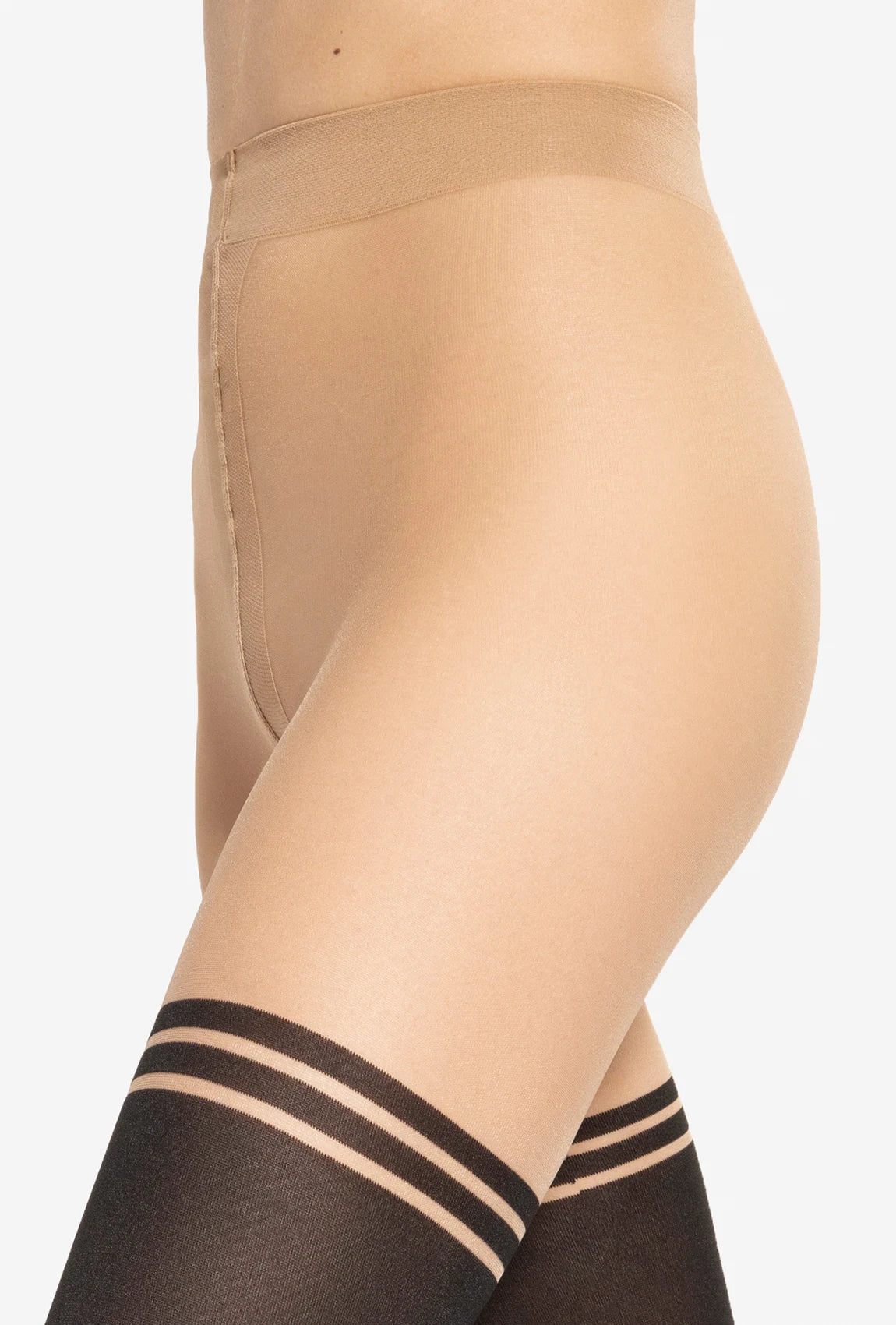 Tak, górna część rajstop imituje pas i pończochy, tworząc elegancki i zmysłowy efekt.