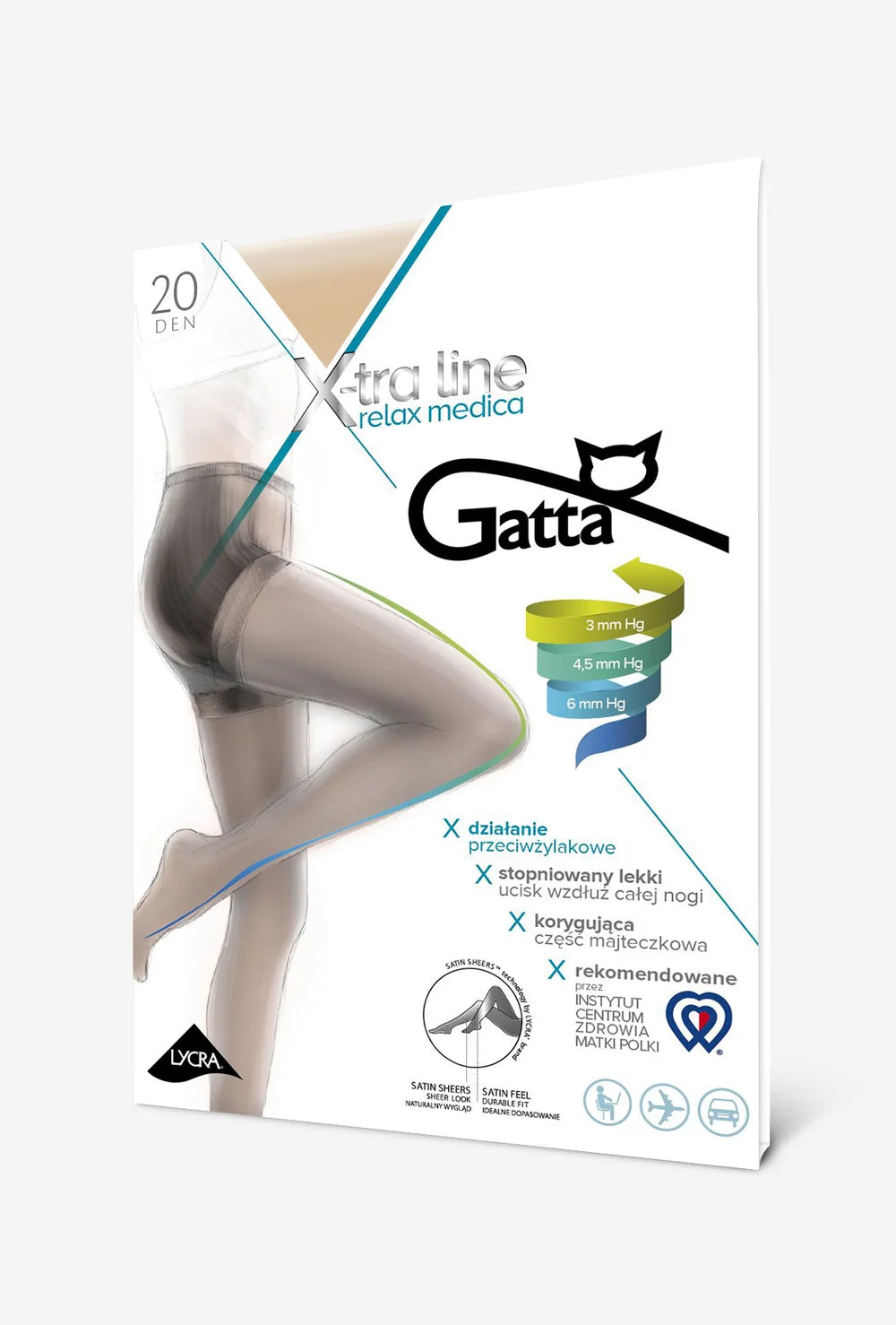 - Nowatorskie rozwiązania w rajstopach Relax Medica od marki Gatta pozwalają zachować uczucie komfortu przez cały dzień kobietom, które narażone są z powodów zawodowych na obciążenia przy długotrwałym siedzeniu bądź staniu. Grubość tkania 20 DEN sprawdzi się świetnie w zestawieniu z eleganckimi kreacjami. Rajstopy mają również udowodnione działanie antyżylakowe.