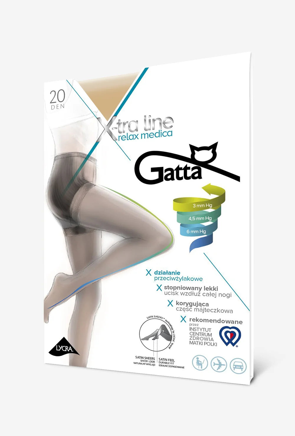 - Nowatorskie rozwiązania w rajstopach Relax Medica od marki Gatta pozwalają zachować uczucie komfortu przez cały dzień kobietom, które narażone są z powodów zawodowych na obciążenia przy długotrwałym siedzeniu bądź staniu. Grubość tkania 20 DEN sprawdzi się świetnie w zestawieniu z eleganckimi kreacjami. Rajstopy mają również udowodnione działanie antyżylakowe.