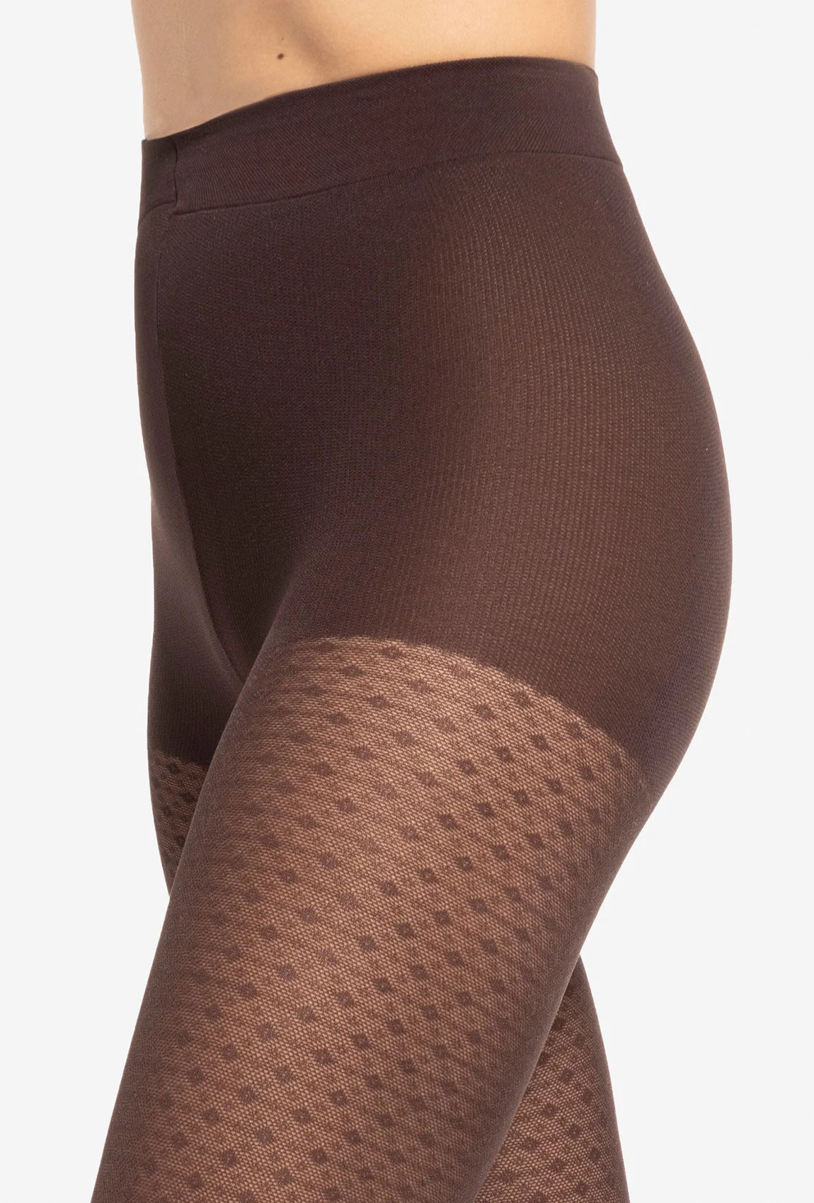 Rajstopy Gatta x Wedel w kolorze Dark Choco to wzorowany model o geometrycznym motywie i matowym wykończeniu. Głęboki, ciepły odcień oraz elegancki deseń sprawiają, że to wyjątkowy dodatek do jesiennych stylizacji, łączący modny wygląd z komfortem noszenia.