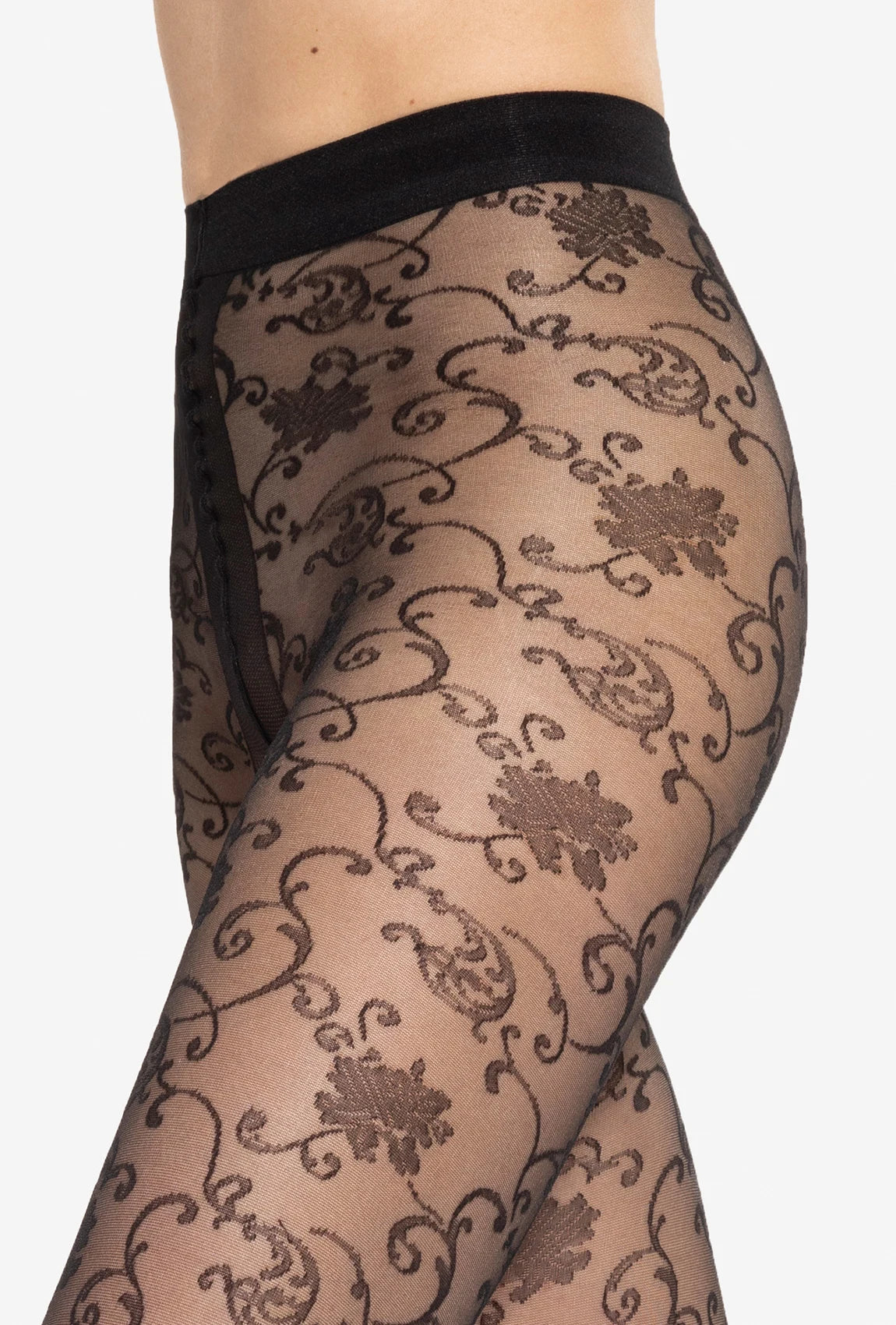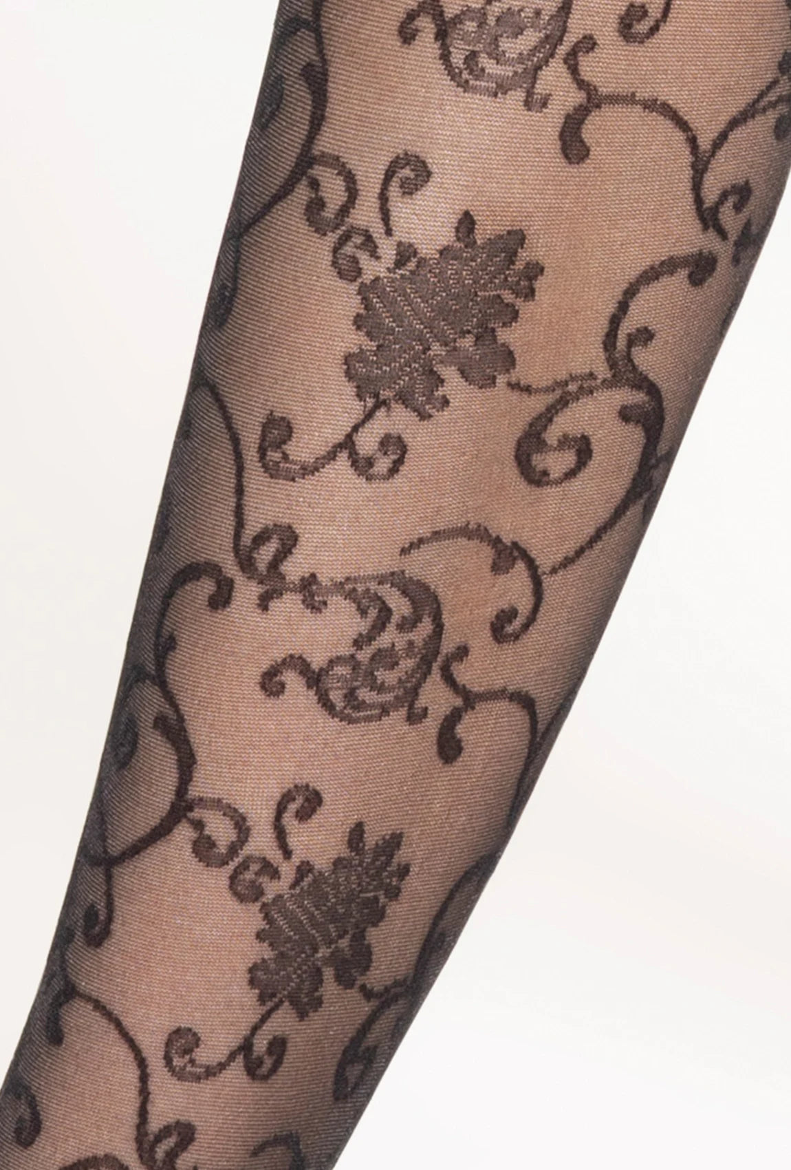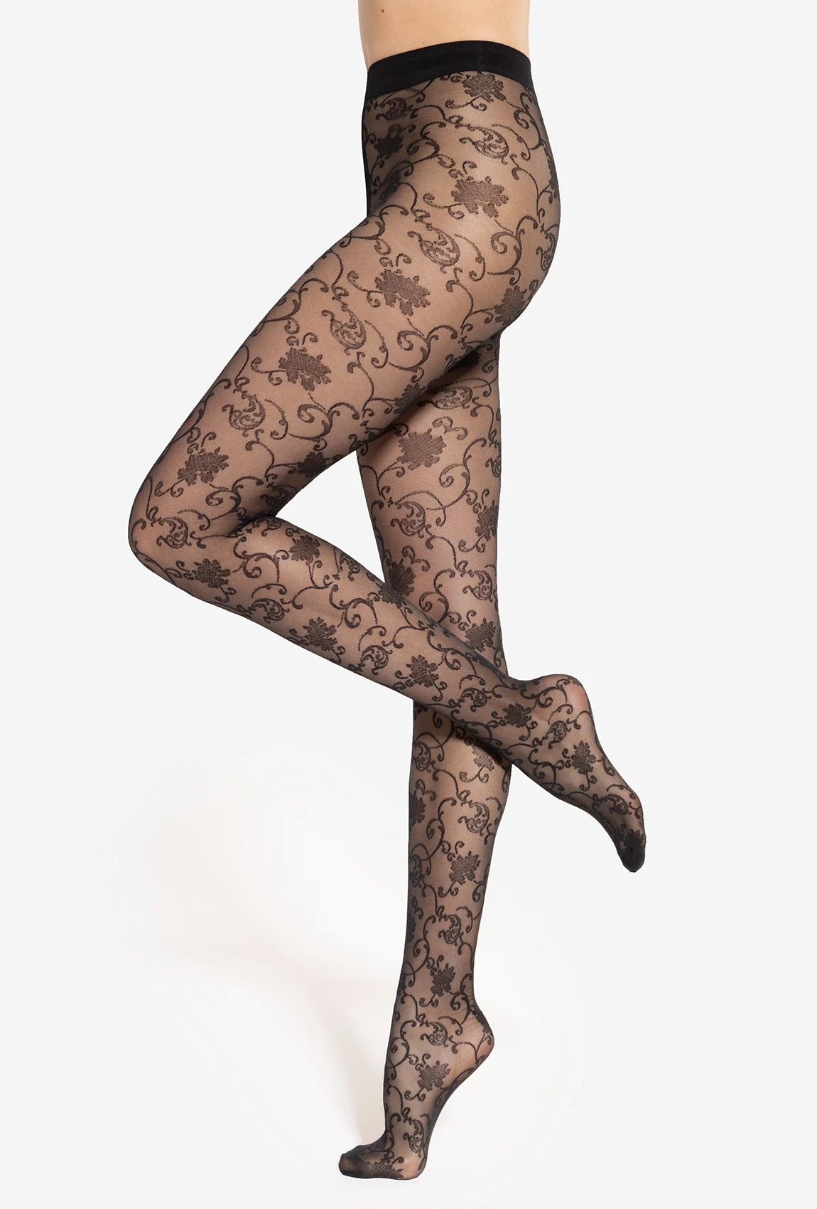 Rajstopy Faria 20 w kolorze Nero to transparentny, matowy model z wyraźnym kwiatowym wzorem. To propozycja dla kobiet, które cenią elegancję w nowoczesnym wydaniu i chcą dodać swoim stylizacjom modnego, efektownego akcentu.