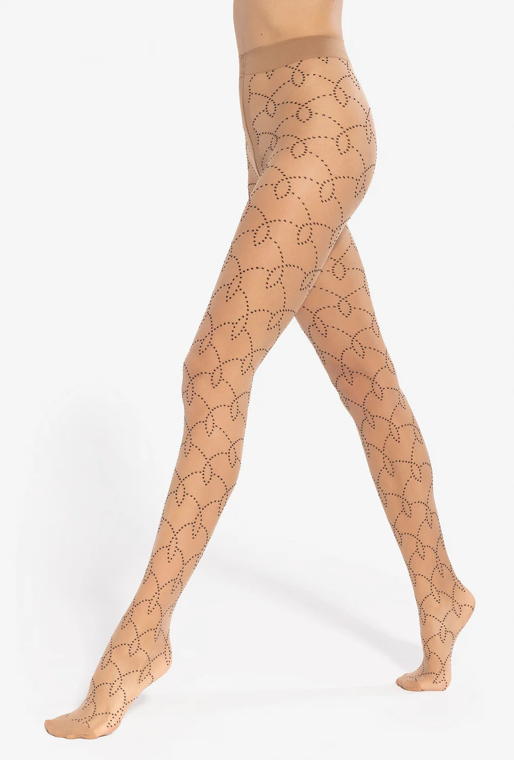 Motyw kropek na rajstopach Fancy układa się w fantazyjne szlaczki, które spowijają całą powierzchnię nóg. Efekt jest wyrazisty i zdecydowanie godny uwagi. To rajstopy, które świetnie prezentują się w stylizacjach z gładkimi sukienkami, tunikami i spódnicami.
