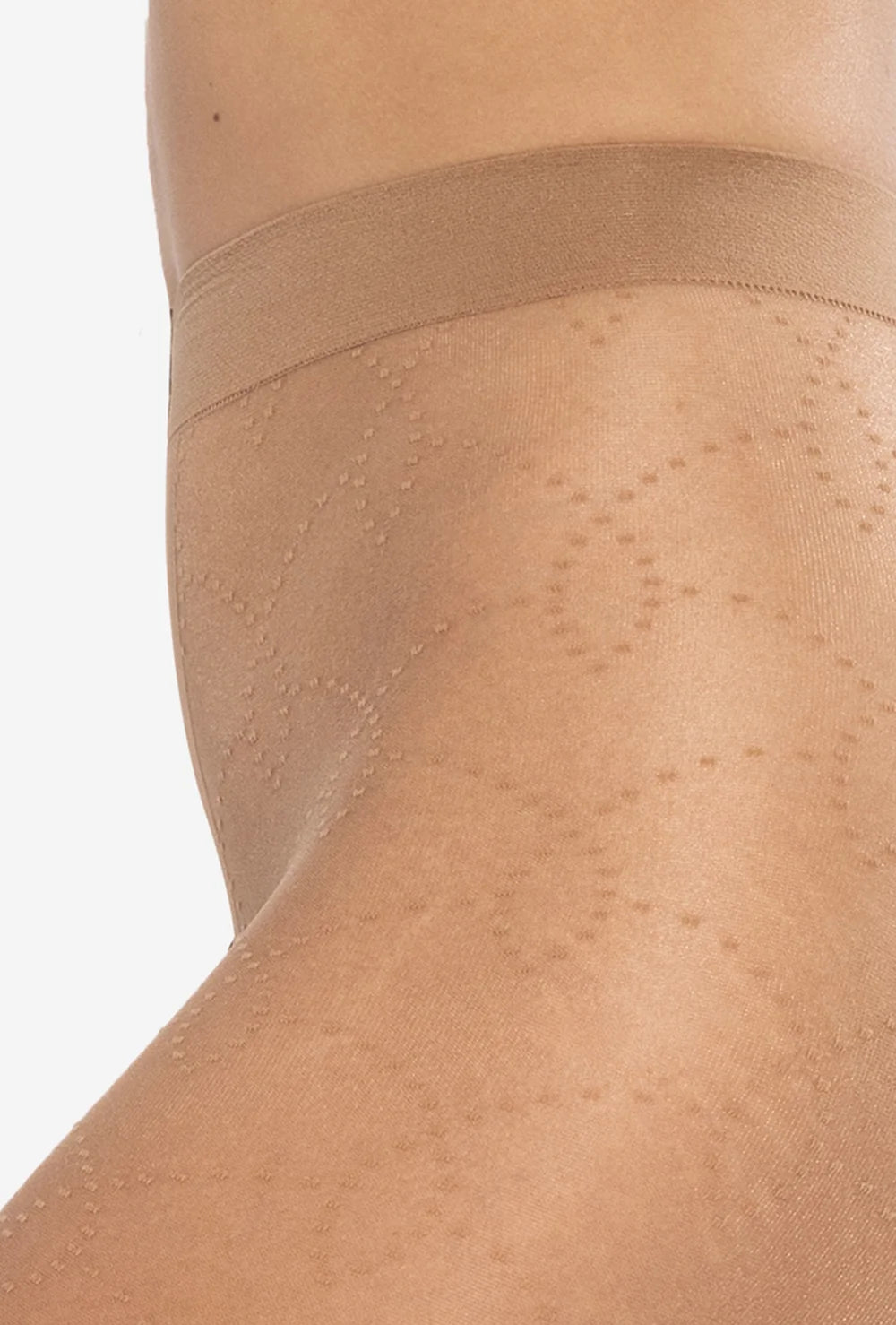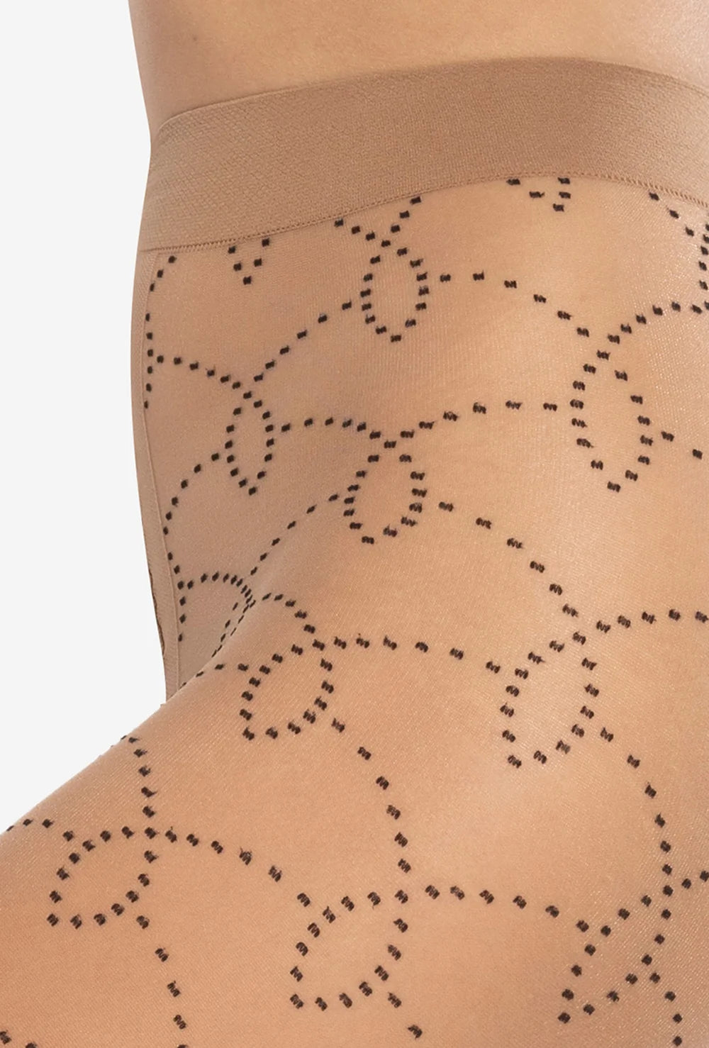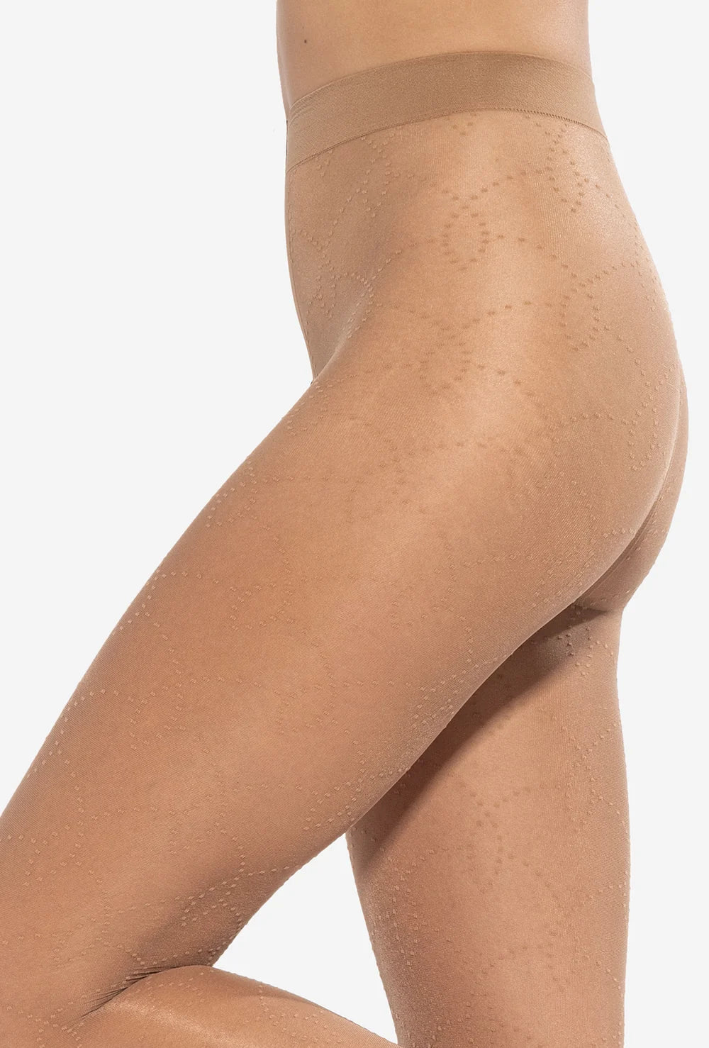 Motyw kropek na rajstopach Fancy układa się w fantazyjne szlaczki, które spowijają całą powierzchnię nóg. Efekt jest wyrazisty i zdecydowanie godny uwagi. To rajstopy, które świetnie prezentują się w stylizacjach z gładkimi sukienkami, tunikami i spódnicami.