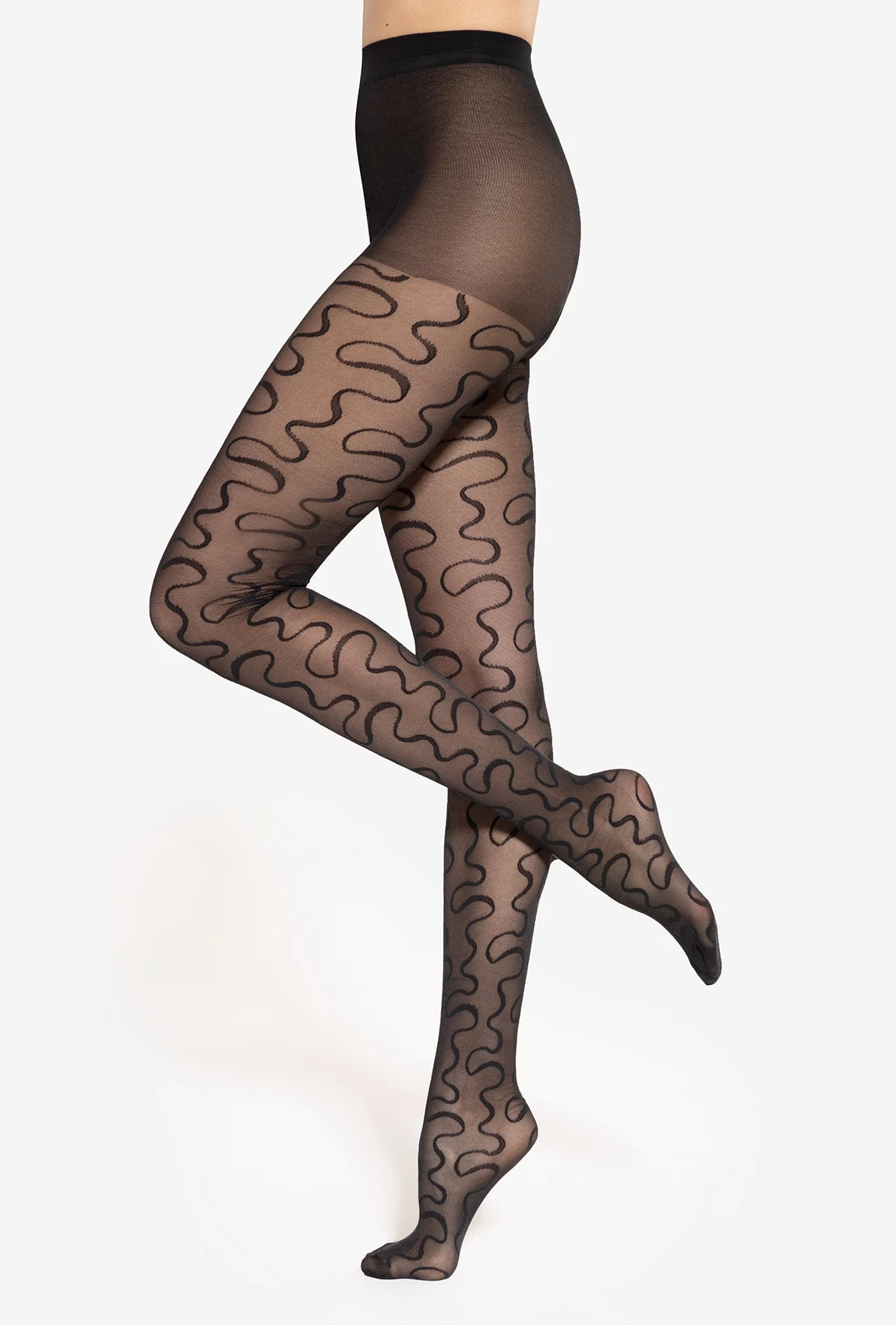 Wyrafinowany, kobiecy i pełen finezji – taki właśnie jest wzór na rajstopach damskich Modern 09. Faliste linie wiją się na całej długości nóg, subtelnie je podkreślając i optycznie wydłużając. Rajstopy te są dostępne w dwóch ciemnych odsłonach kolorystycznych, dzięki czemu tak świetnie wpisują się w typowo wieczorowe i artystyczne stylizacje.