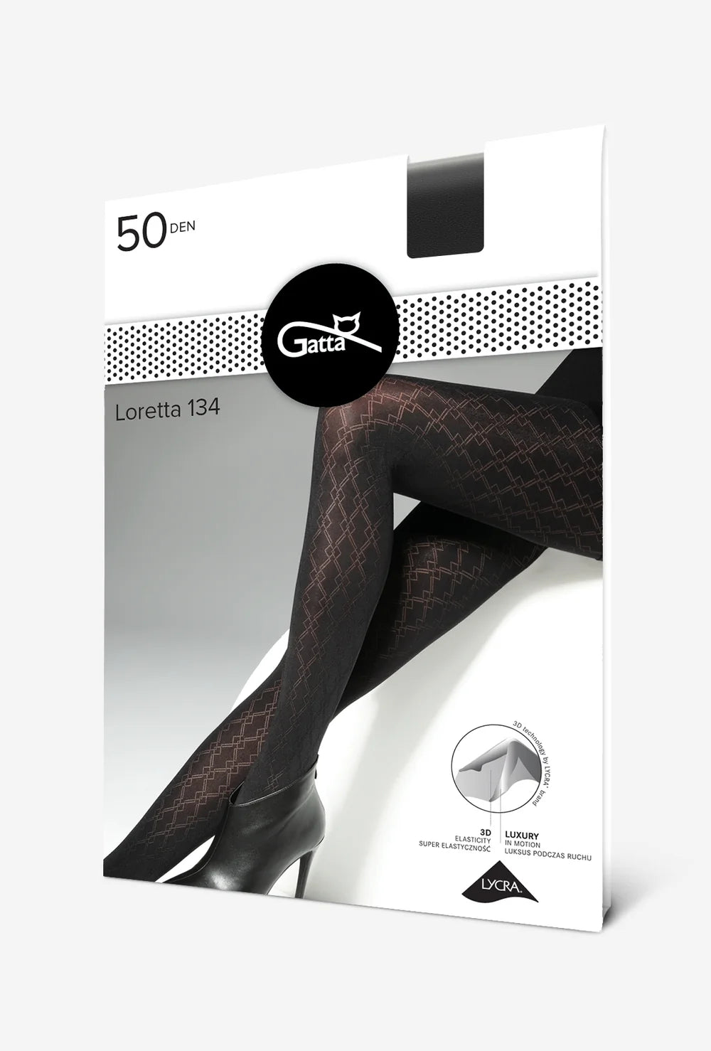 Rajstopy wzorzyste z mikrofibry Loretta wz. 134 to gwarancja najwyższej jakości i oryginalnego wyglądu. Tej jesieni królują geometryczne wzory, których nie mogło zabraknąć na rajstopach Gatta.