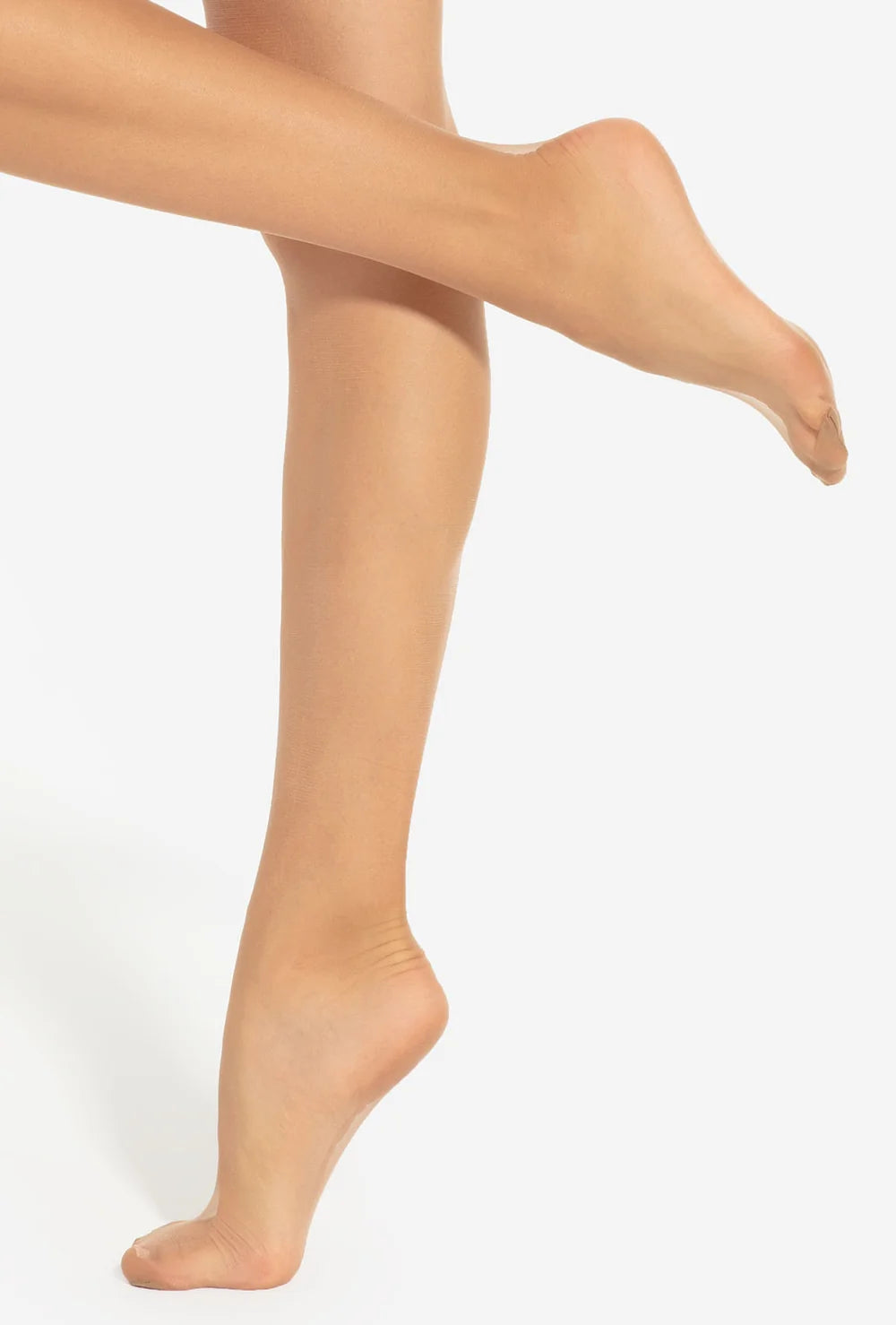 Rajstopy damskie wykonane ze specjalnej przędzy poliamidowej bez dodatku elastanu o zwiększonej transparentności i delikatnym połysku. Dzięki dużej elastyczności lekko dopasowują się do nóg, subtelnie je osłaniając.