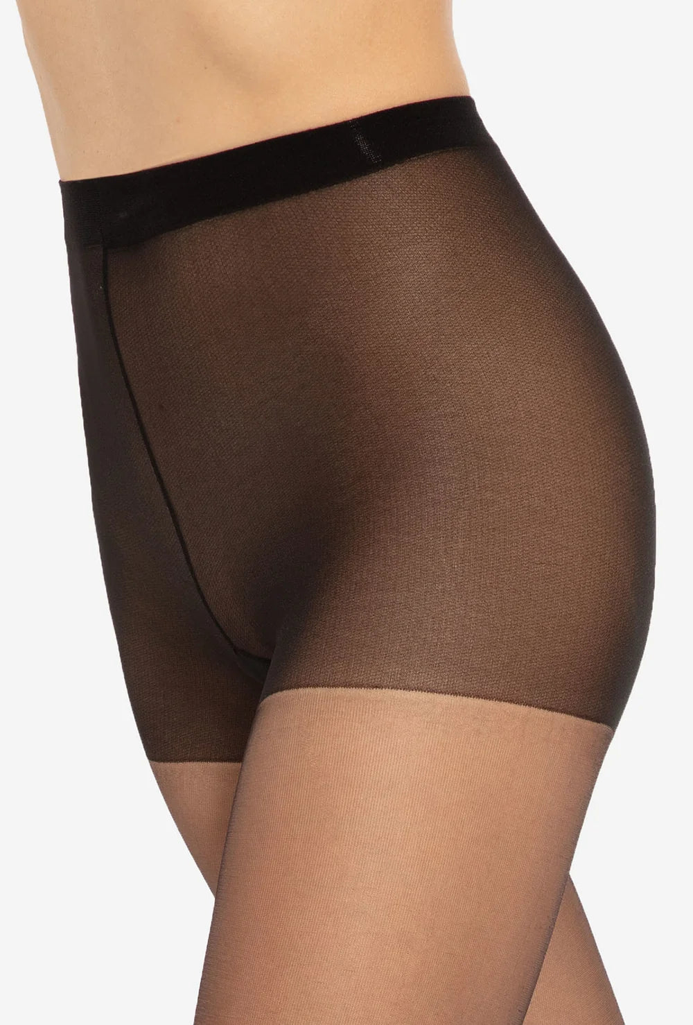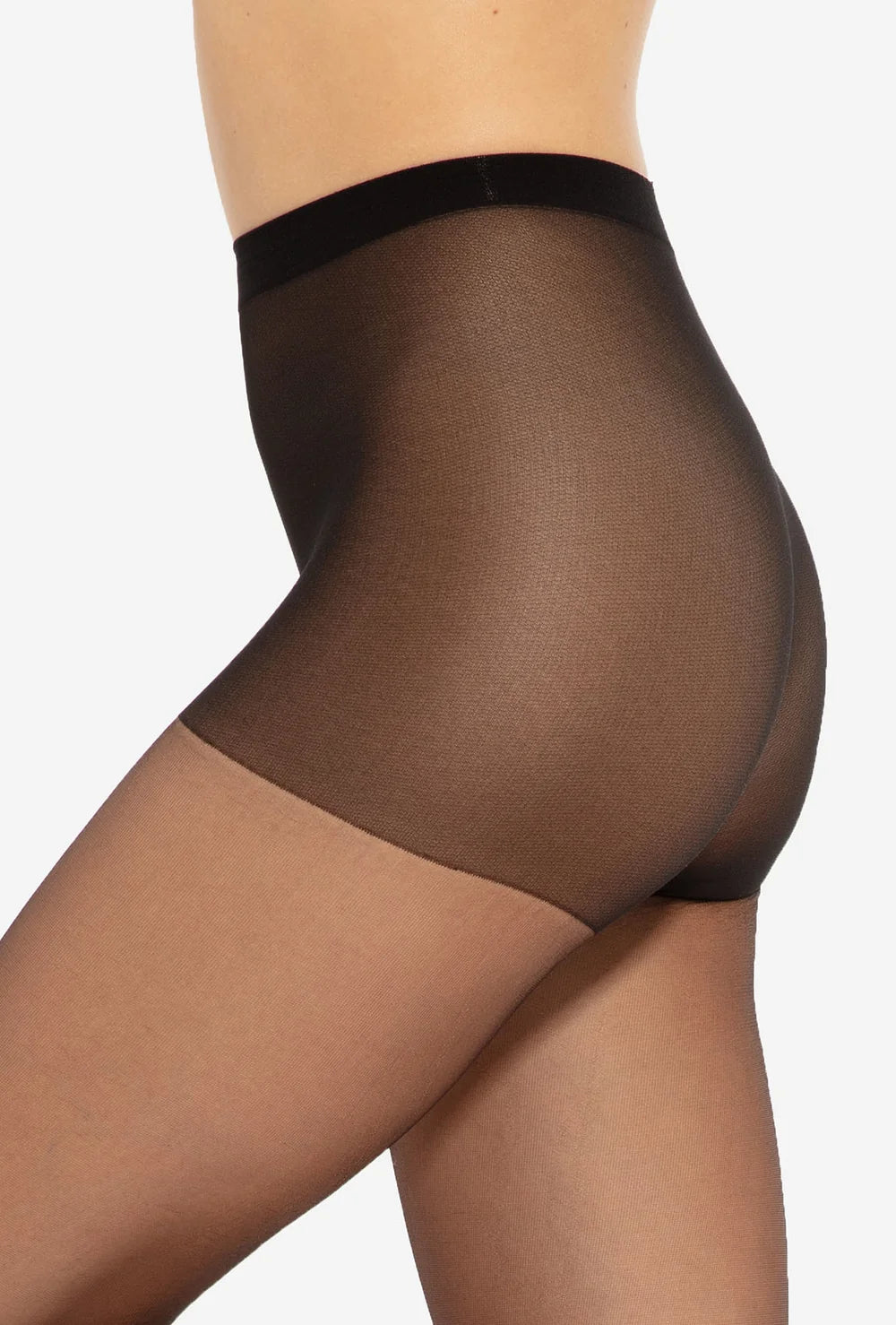 Rajstopy damskie wykonane ze specjalnej przędzy poliamidowej bez dodatku elastanu o zwiększonej transparentności i delikatnym połysku. Dzięki dużej elastyczności lekko dopasowują się do nóg, subtelnie je osłaniając.