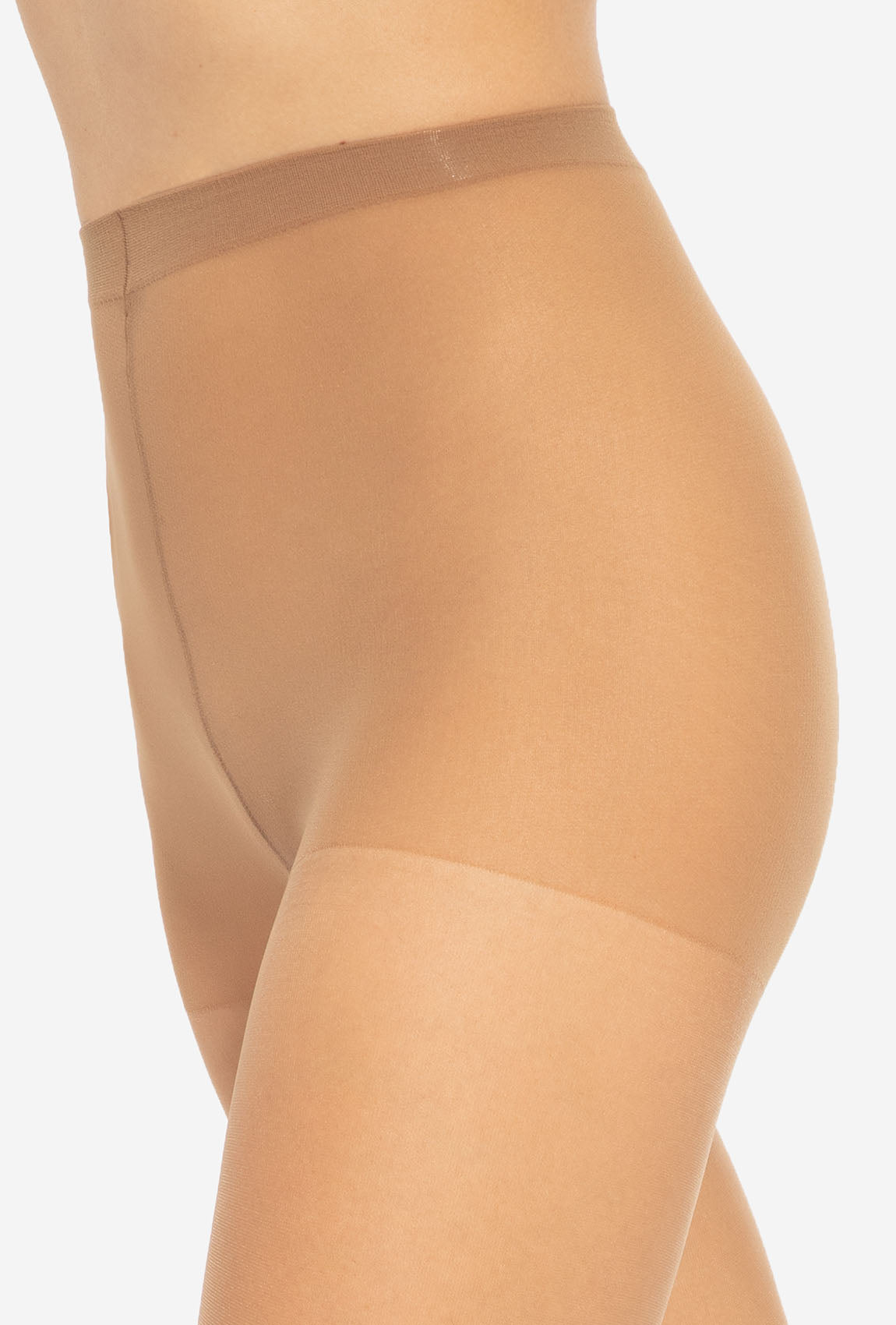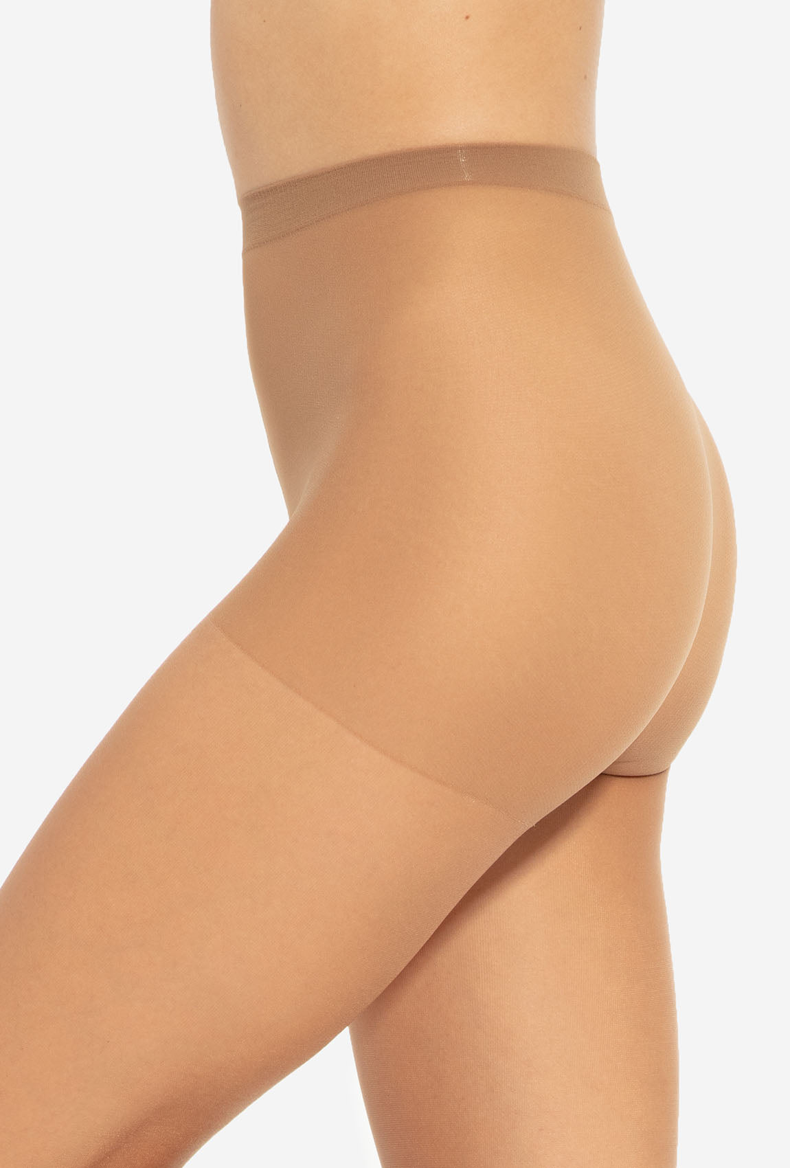 Rajstopy damskie wykonane ze specjalnej przędzy poliamidowej bez dodatku elastanu o zwiększonej transparentności i delikatnym połysku. Dzięki dużej elastyczności lekko dopasowują się do nóg, subtelnie je osłaniając.