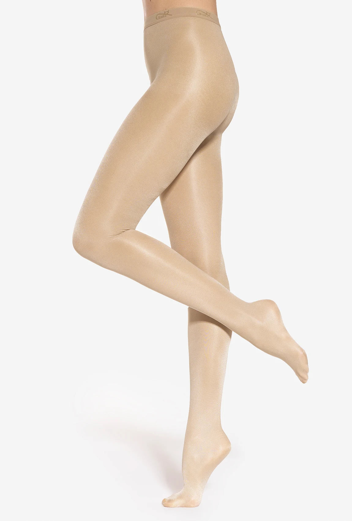 Rajstopy Iluminate w kolorze Dune 2 to model łączący kryjącą strukturę i subtelny połysk. Beżowy odcień nadaje im naturalności i uniwersalności, a błyszczące wykończenie sprawia, że każda stylizacja nabiera eleganckiego charakteru.