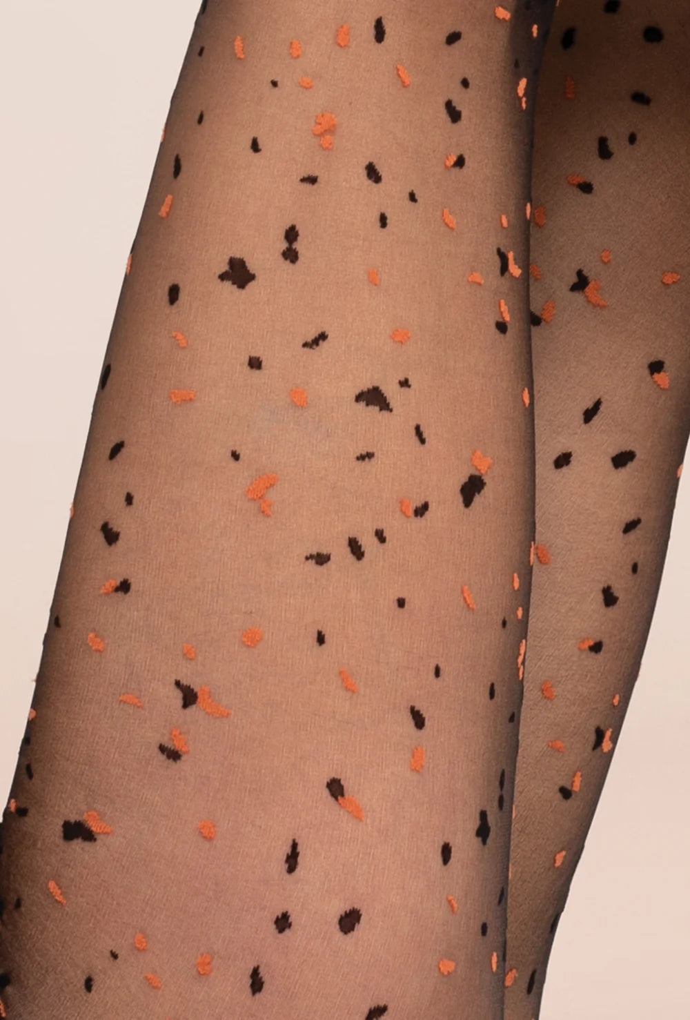 • Rajstopy Arti wykonane w nowoczesnej technologii z charakterystycznym wzorem imitującym konfetti to propozycja dla Pań, które lubią wyzwania. Można je zestawić zarówno z czarną spódnicą jak również łososiową sukienką.