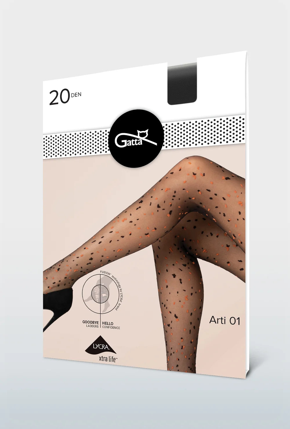 Fantazyjne rajstopy Arti to propozycja marki Gatta dla kobiet z kreatywnym i artystycznym podejściem do życia. Imitujący konfetti wzór na rajstopach idealnie sprawdzi się w szalonych, imprezowych stylizacjach, ale również skutecznie rozweseli poważną biznesową kreację.