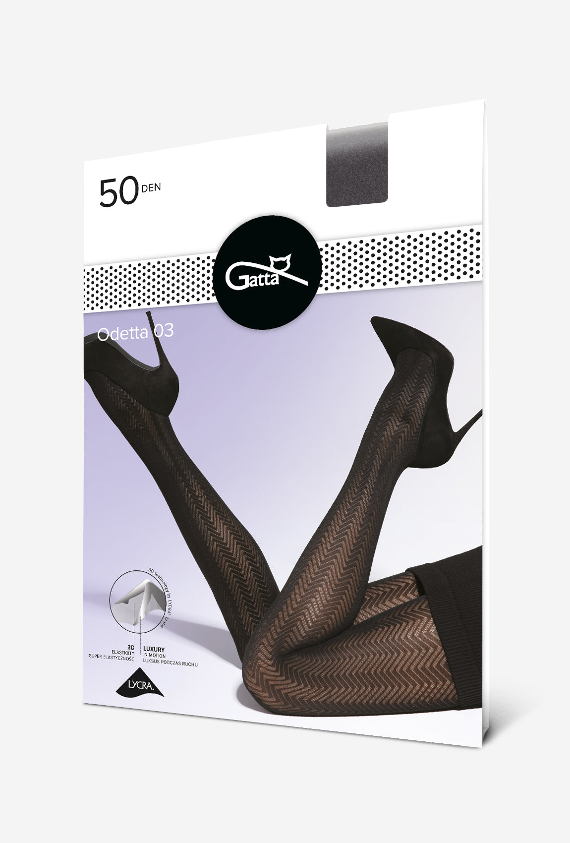 Szukasz rajstop, które posłużą Ci dłużej niż jeden sezon? Odpowiedzią na Twoje potrzeby są wyroby pończosznicze Gatta, które powstają przy użyciu przędz najwyższej jakości. Nasze wzorowane rajstopy Odetta zostały wykonane w 93% z poliamidu oraz w 7% z przędzy elastycznej Lycra®. Takie połączenie materiałów przekłada się nie tylko na ich miękkość, ale także zwiększoną elastyczność, trwałość i wytrzymałość. Rajstopy ze wzorem w jodełkę spełnią oczekiwania najbardziej wymagających klientek Gatta!