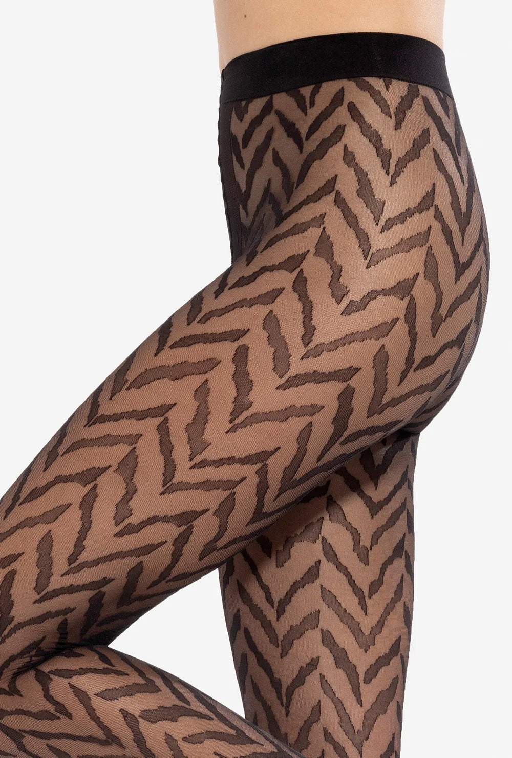 Rajstopy Gatta Tracy 02 to kwintesencja kobiecej elegancji z odrobiną drapieżnego charakteru. Ich znakiem rozpoznawczym jest wzór inspirowany tygrysimi paskami, który urozmaici każdą stylizację. Czarne, cienkie rajstopy z wyrazistym deseniem doskonale komponują się zarówno z klasycznymi sukienkami i spódnicami, jak i bardziej awangardowymi zestawami. To model dla kobiet, które cenią sobie elegancję, ale lubią również przemycać do swoich stylizacji odważniejsze detale.