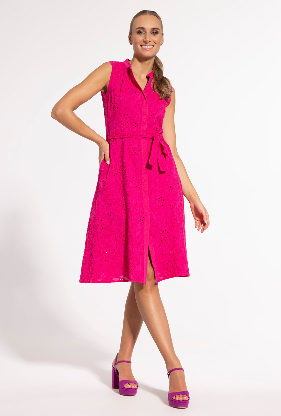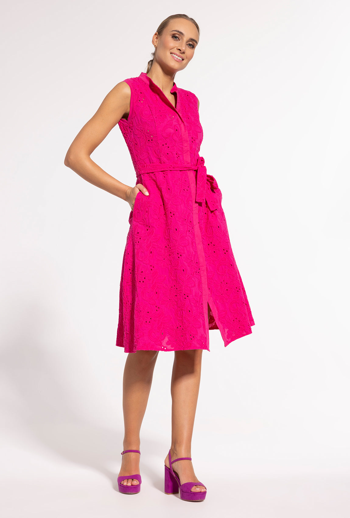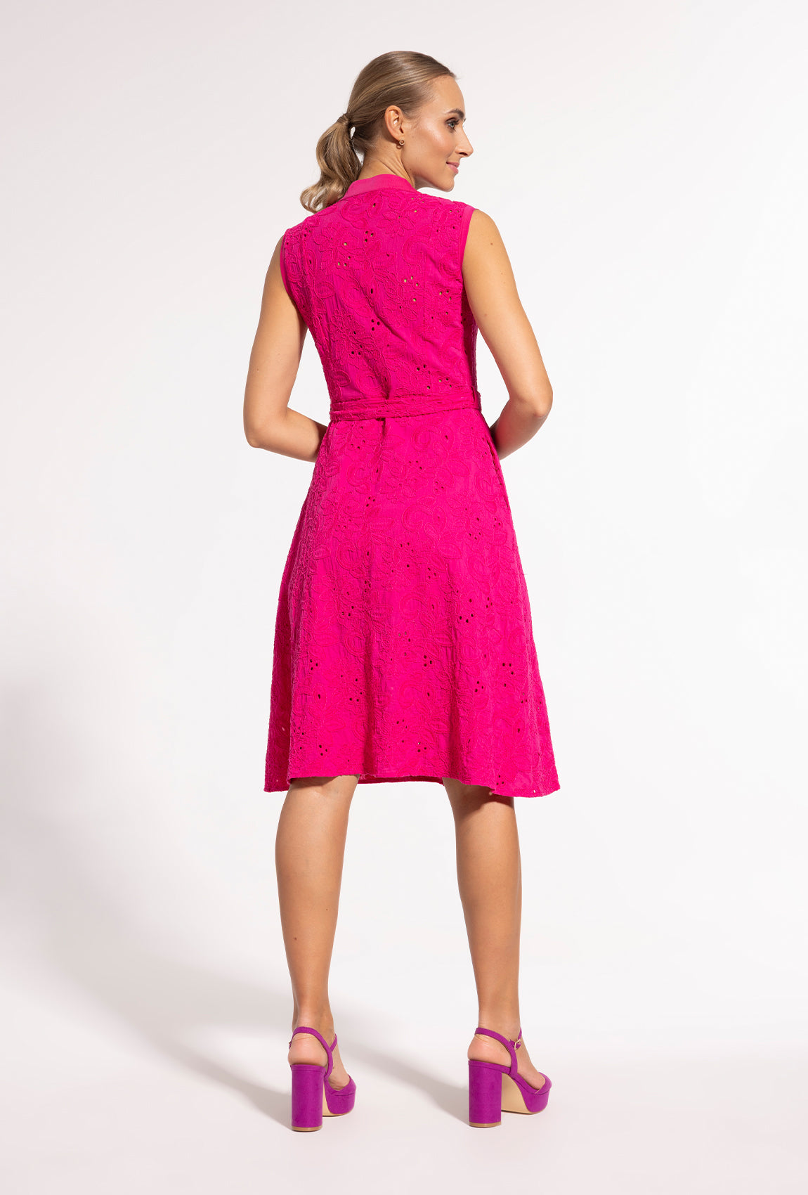 ale także za jakość i skład. Podczas ciepłych i słonecznych dni warto stawiać na ubrania wykonane z naturalnych materiałów, takie jak np. różowa sukienka koszulowa midi Sheila. Wykonano ją w 100% z bawełny, która jest miękka, przewiewna, nie uczula, nie podrażnia skóry, a także dobrze wchłania wilgoć z jej powierzchni. Mając na sobie taką sukienkę, uczucie komfortu wejdzie na nowy, wyższy poziom. Już dziś zdecyduj się na zakup naszej bawełnianej szmizjerki i przekonaj się o tym osobiście.