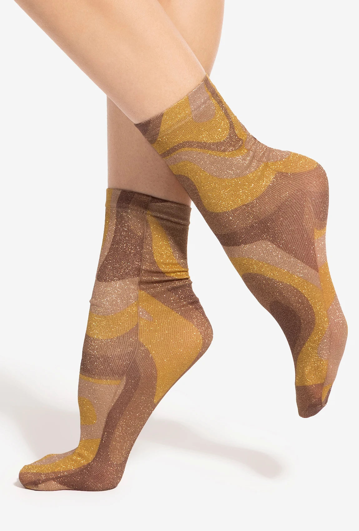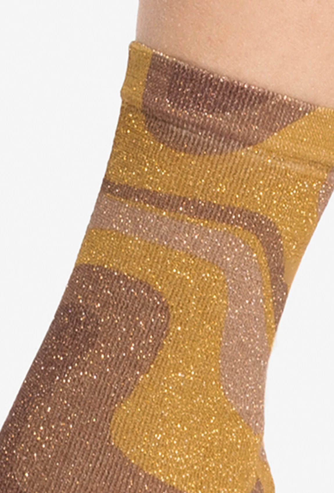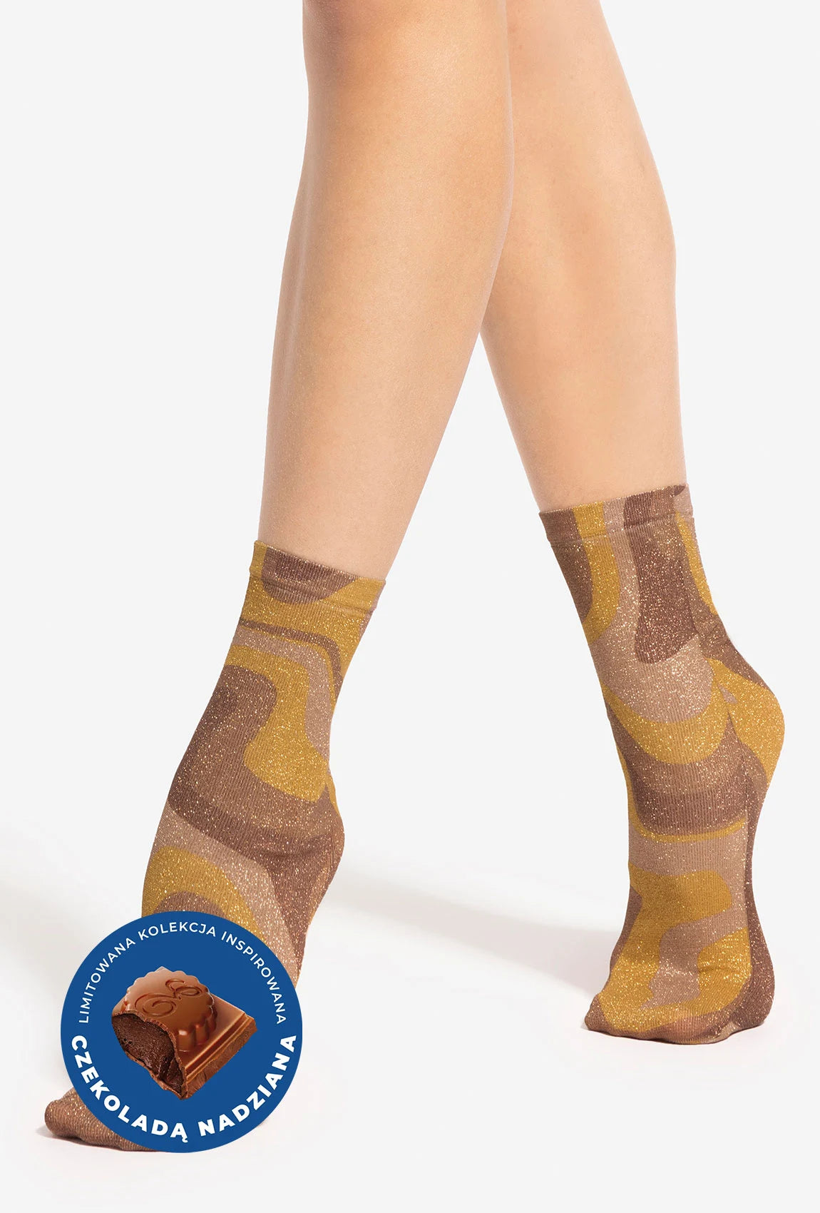 Skarpetki Carmello z kolekcji Gatta x Wedel – połysk w odcieniu karmelowego złota