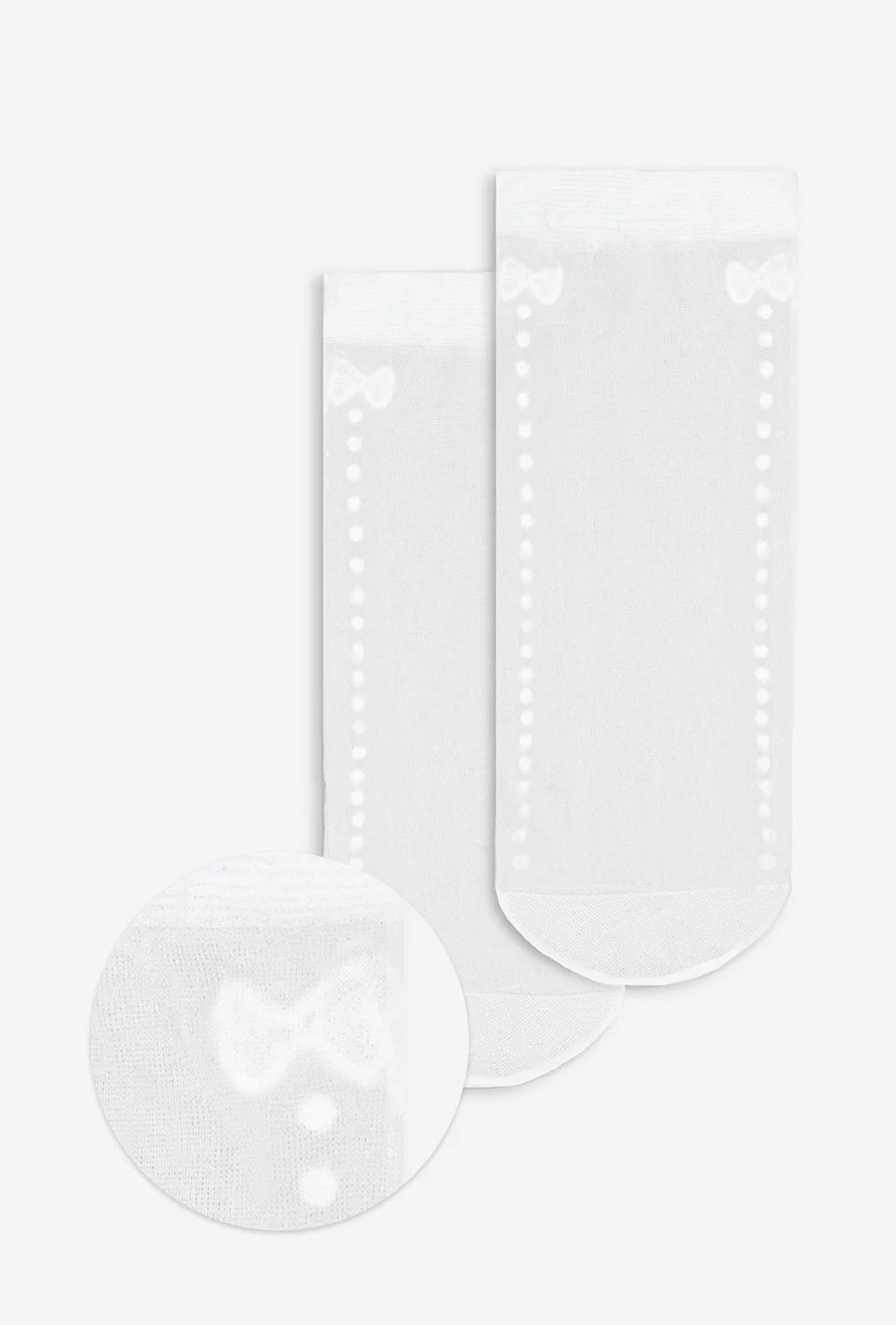 Cienkie skarpetki dziecięce Alice 09 posiadają subtelny wzór po obu stronach. Kropeczki ułożone w linię i zwieńczone uroczą kokardką to kwintesencja dziewczęcego wdzięku i dobrego stylu. Skarpetki z tym motywem będą doskonałe na każdą okazję!