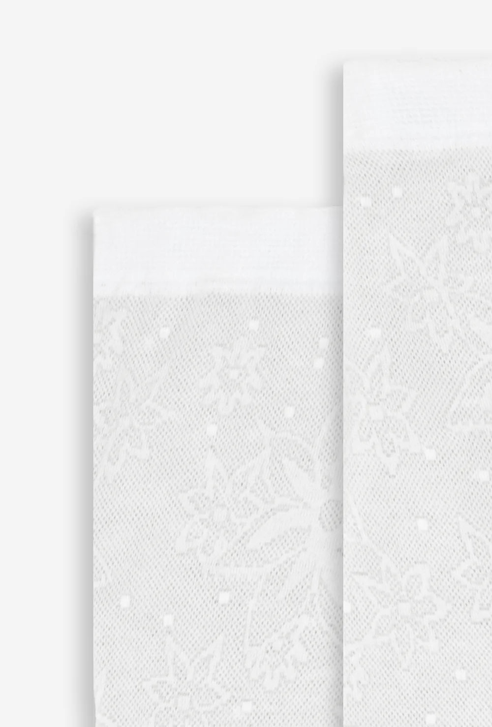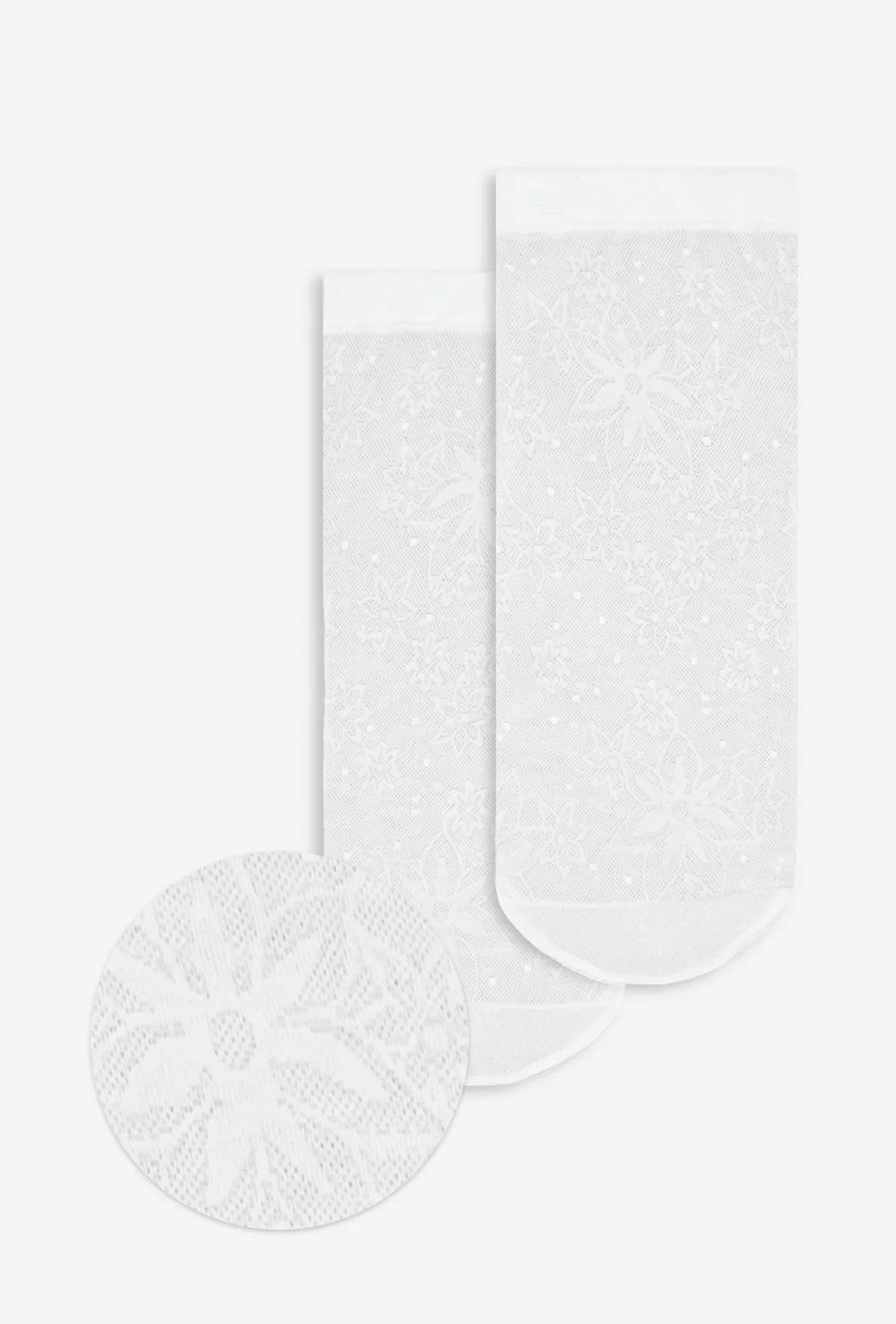 Miłośniczki kwiatowych motywów będą zachwycone białymi skarpetkami Alice 12. Ich całą powierzchnię pokrywa misterny, a jednocześnie bardzo delikatny wzór kwiatowy. Skarpetki te są cienkie i transparentne, dlatego wręcz idealnie spisują się wiosną.