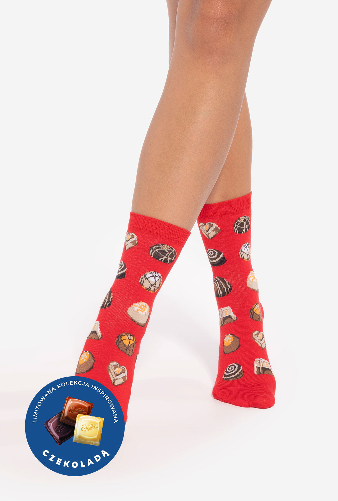 Komfortowe skarpetki z niezwykle apetycznym wzorem - inspirowane czystą słodyczą i urokiem wykwintnych czekoladek.