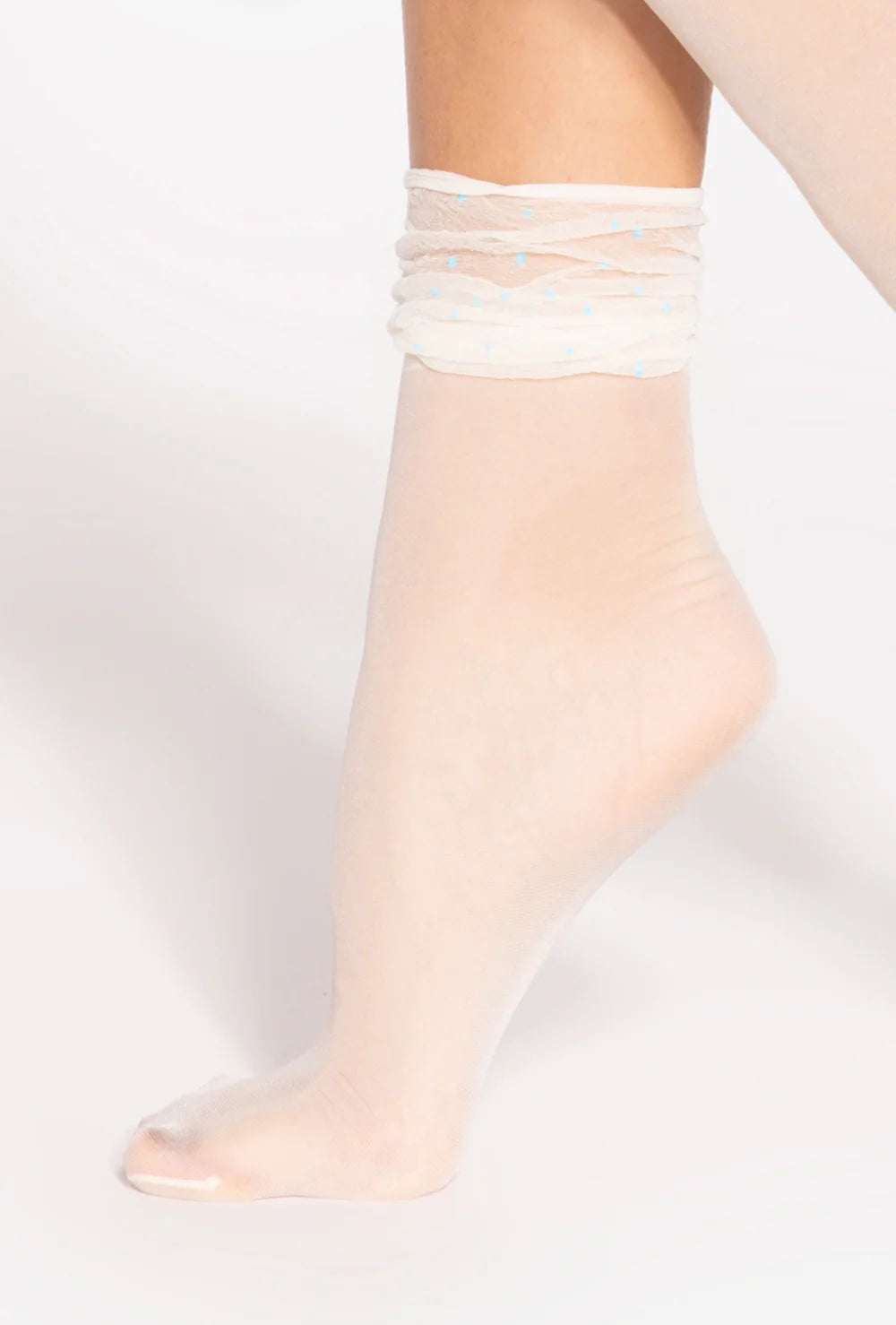 Cienkie skarpetki rajstopowe to nieodłączny element wielu kobiecych stylizacji. Są idealnym wyborem do eleganckiego obuwia - pasują zarówno do spodni, jak i do spódnic lub sukienek. Model Spring Vibes 05 od Gatta zwraca uwagę efektownym wykończeniem górnej krawędzi - układa się ona w efektowne fałdy, podkreślając lekkość i transparentny charakter materiału. Urozmaiceniem jest także delikatny motyw kropeczek ulokowany w górnej części skarpet.