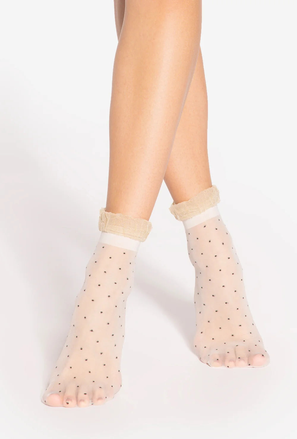 Subtelne i niemal eteryczne skarpetki damskie z delikatnym motywem kropek. Wykonane z elastycznego materiału - idealne do eleganckiego obuwia. Skarpetki Spring Vibes 06 od Gatta zwracają uwagę nie tylko deseniem w urocze kropeczki, ale też ciekawym fasonem z delikatnym marszczeniem w górnej części, co podkreśla lekkość i subtelność stylizacji.