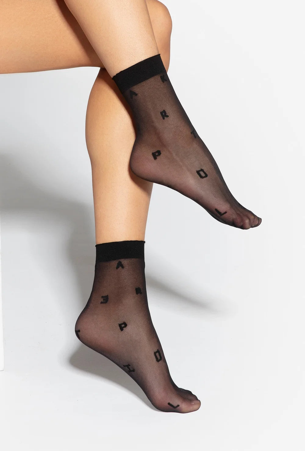 Rajstopowe skarpetki ozdobione niebanalnym wzorem sprawdzą się na co dzień, jeśli nie chcesz zakładać rajstop ani bawełnianych skarpet. Model z kolekcji Letters to ciekawa propozycja do stworzenia oryginalnych stylizacji.