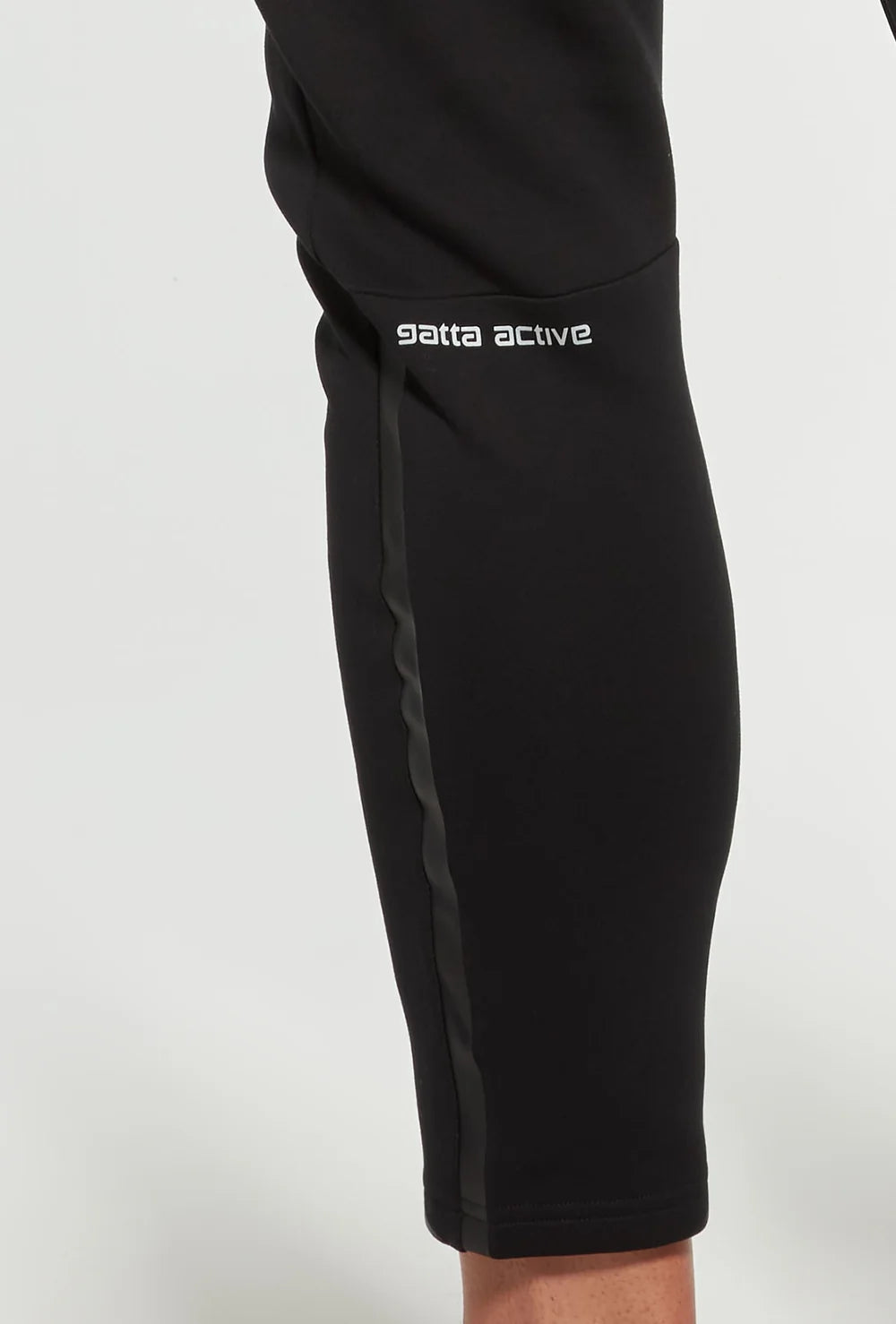 Spodnie dresowe w czarnym kolorze z pewnością będą pasowały do wielu ubrań, które już posiadasz, a jeśli kompletujesz odzież sportową, przejrzyj pozostałe produkty z kolekcji Gatta Active Running dla mężczyzn. Znajdziesz wśród nich również męskie legginsy oraz spodenki o fasonie kolarek. W kolekcji nie mogło zabraknąć również funkcjonalnej bluzy z kapturem. Cała seria utrzymana jest w czarnej kolorystyce z białymi elementami odblaskowymi. Odzież z tej kolekcji została zaprojektowana z myślą o bieganiu, ale świetnie spisuje się również podczas innych aktywności sportowych i rekreacyjnych.