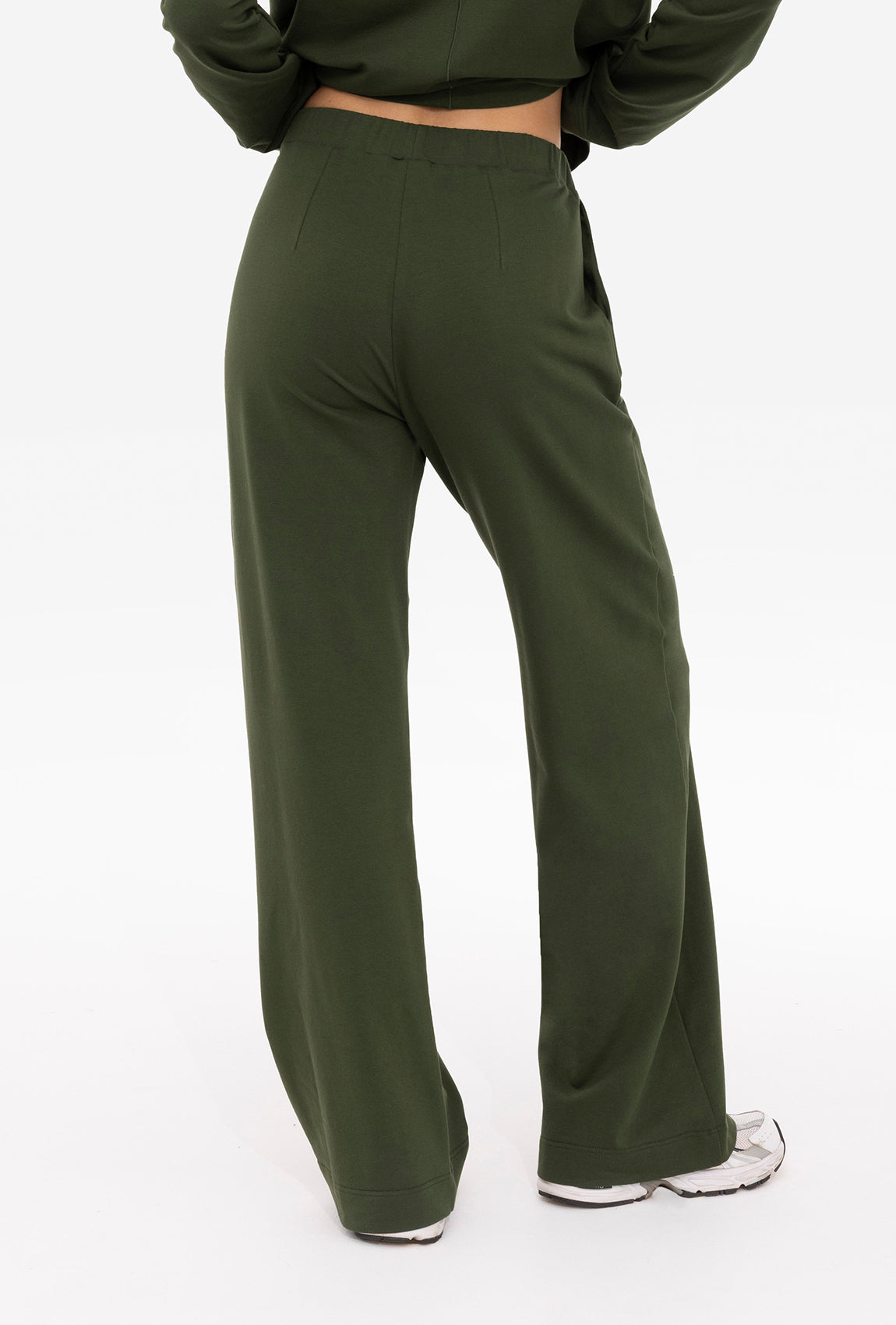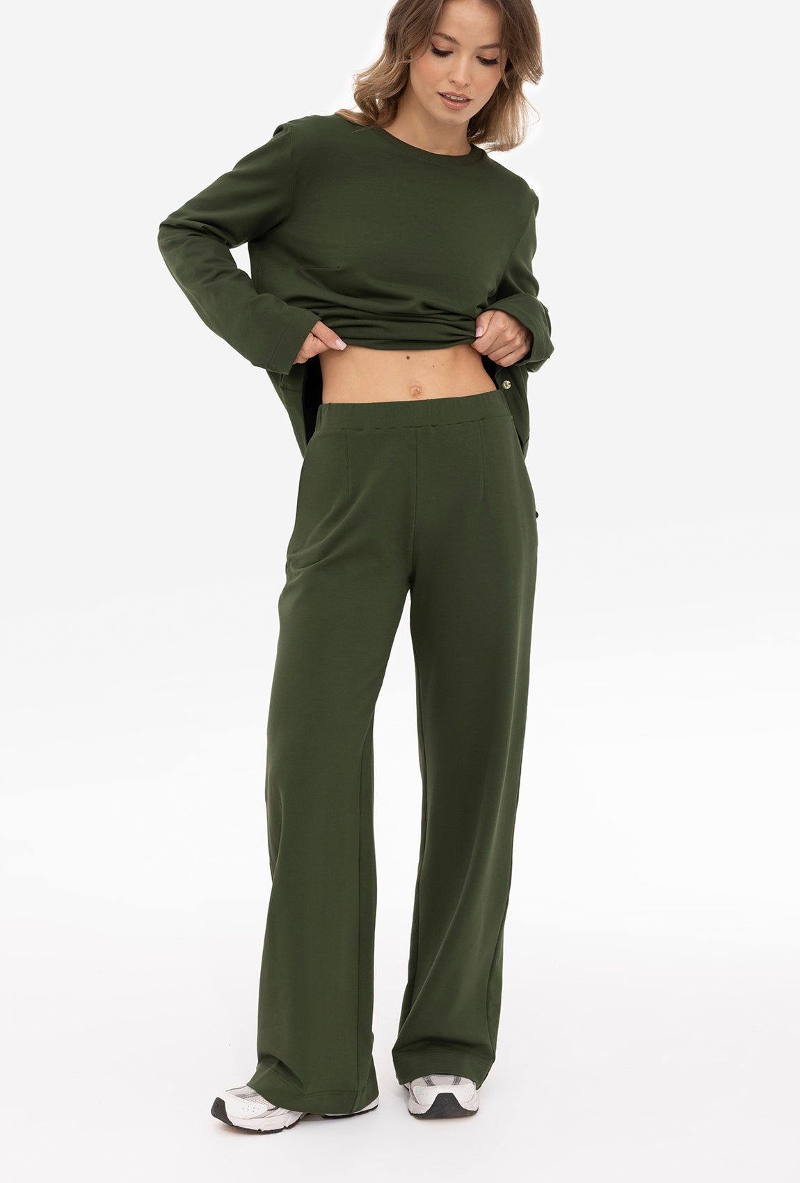 Pierwsze, co wpada w oko, to swobodny, a jednocześnie kobiecy charakter tego modelu. Spodnie ADA mają szerokie nogawki, ale też zaszewki modelujące, które zapewniają ich korzystne ułożenie na sylwetce. Ich mocnym atutem jest również odcień – głęboka tonacja khaki. To barwa wprowadzająca do garderoby jesienny, otulający efekt.