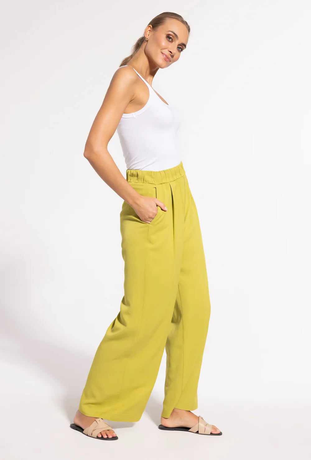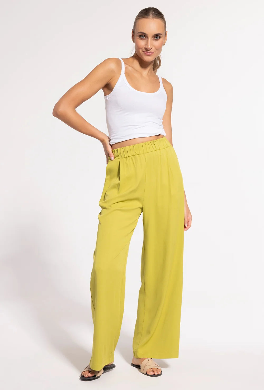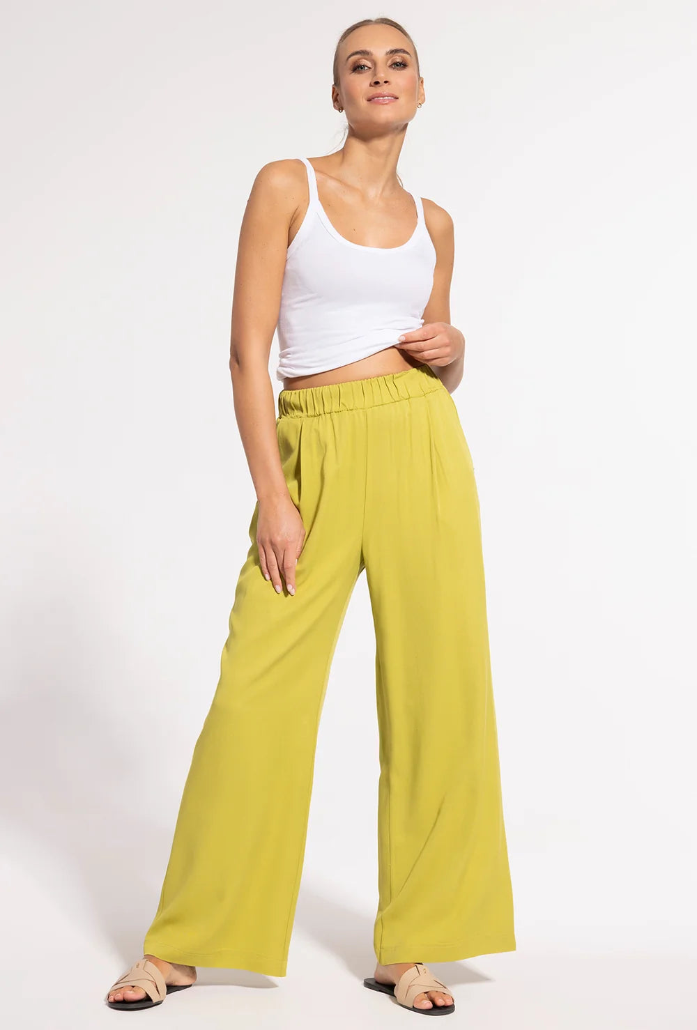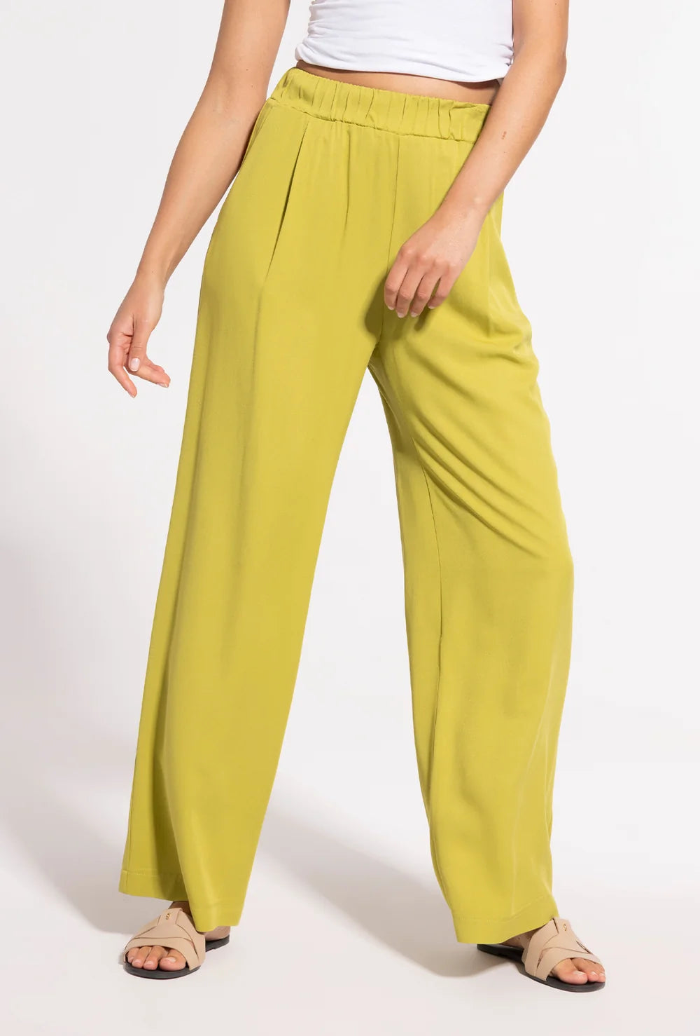 Wybierz spodnie Leni w klasycznym beżu lub w odcieniu limonki