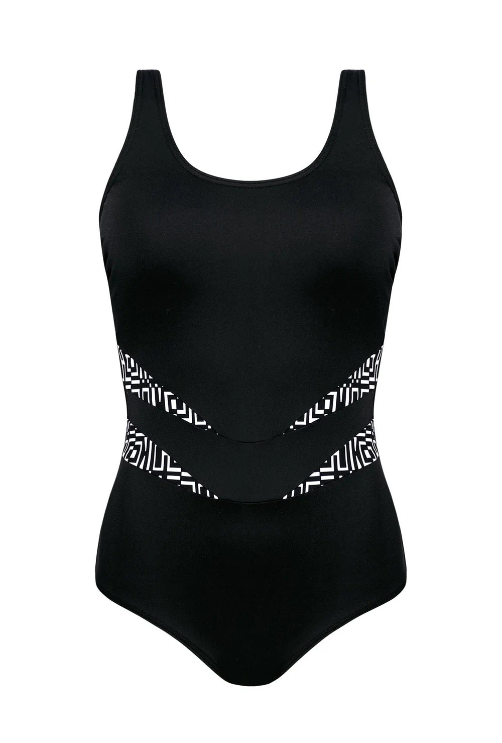 Sportowe stroje kąpielowe mogą być nie tylko wygodne, ale również dopracowane pod względem wizualnym. Model Pacific 22 od marki Gatta urzeka minimalistyczną estetyką. Jego zasadniczym kolorem jest czerń, którą urozmaicono trójkątnymi wstawkami w neonowych odcieniach różu i moreli. Te barwne detale umieszczono na wysokości talii w taki sposób, by akcentowały sylwetkę oraz optycznie ją wysmuklały.