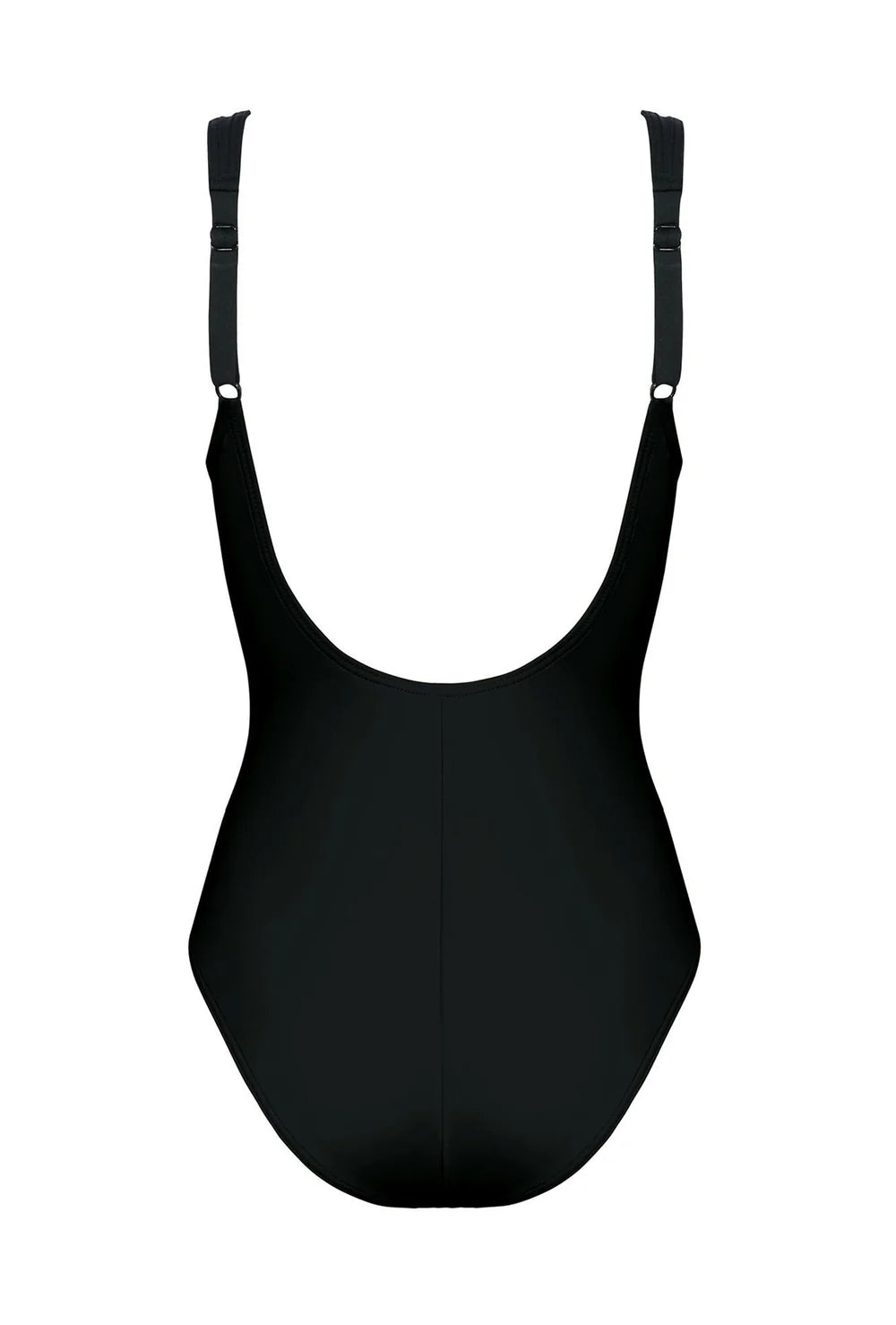 Kostium ten zwraca uwagę fasonem odkrywającym plecy. Jego delikatnie usztywniane miseczki są dodatkowym atutem - optymalnie modelują i podtrzymują biust, do wpływa korzystnie na wygodę i indywidualne poczucie komfortu.