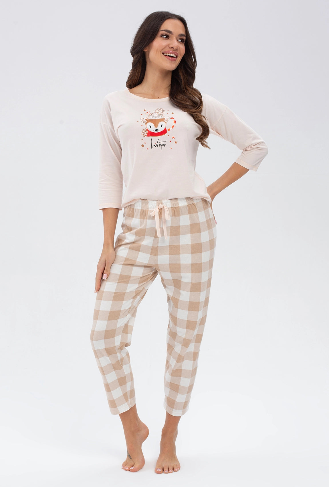 Damskie piżamy dwuczęściowe cieszą się niesłabnącą popularnością i trudno się temu dziwić – oferują wygodę noszenia, są praktyczne, a często również bardzo efektowne. Jeśli lubisz otulać się do snu miękką bawełną, piżama Winter będzie trafionym wyborem. Wykonano ją z tkaniny w 100% bawełnianej, która charakteryzuje się delikatnością, jest przewiewna, a jednocześnie chroni przed chłodem. Jej mocnym atutem jest również klasyczny, lekko swobodny fason ze spodniami o prostych nogawkach i koszulką z rękawem o długości 3/4.