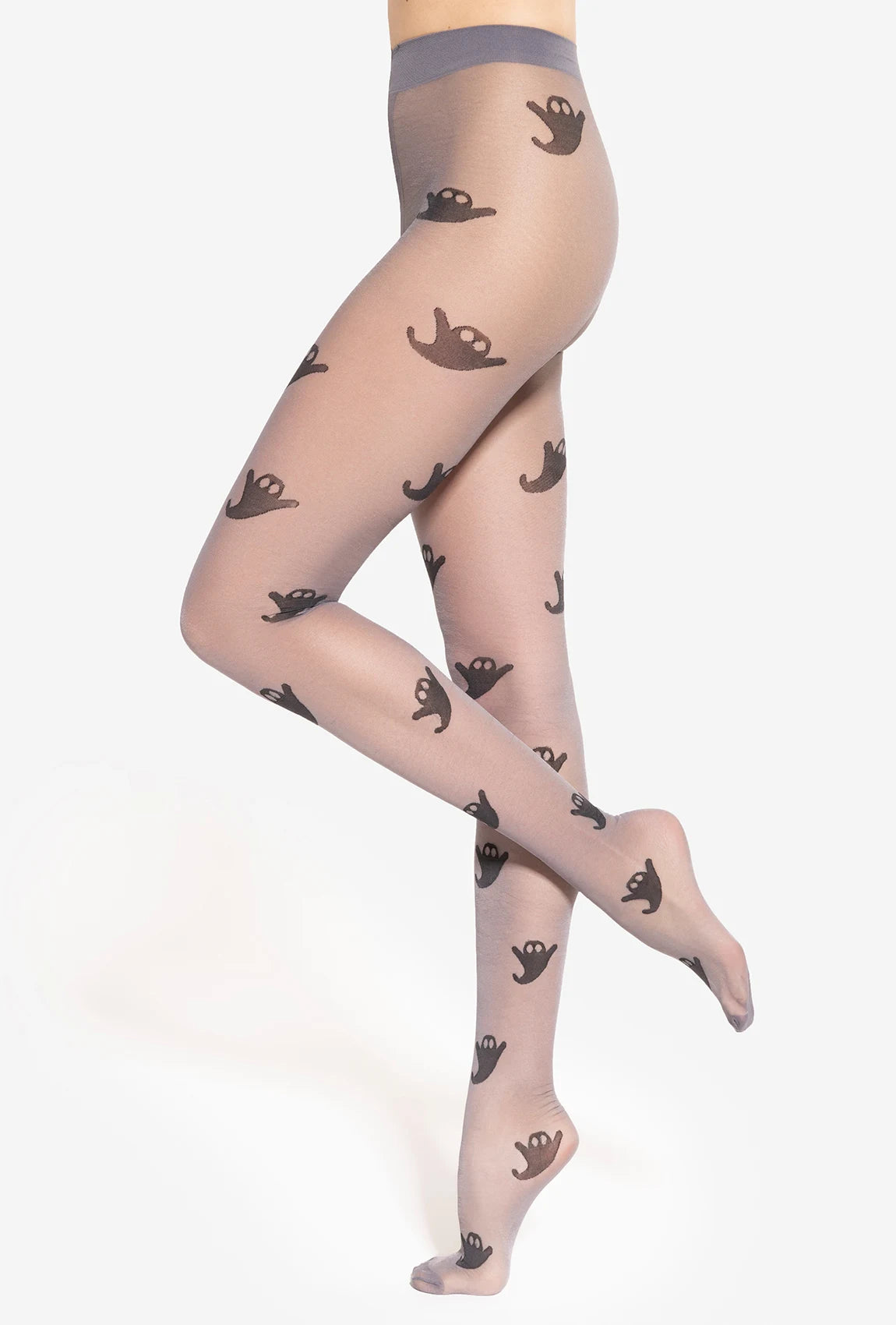 Rajstopy Crazy Trick 05 w kolorze Grafit.Nero to oryginalny model, który łączy modny design z zabawnym, halloweenowym motywem. Wykonane z transparentnej przędzy, zdobione zostały uroczym wzorem w duszki, który w subtelny sposób nawiązuje do klimatu Halloween. Ich szary odcień stanowi ciekawą alternatywę dla klasycznej czerni – nadaje lekkości i delikatnie rozświetla stylizację.