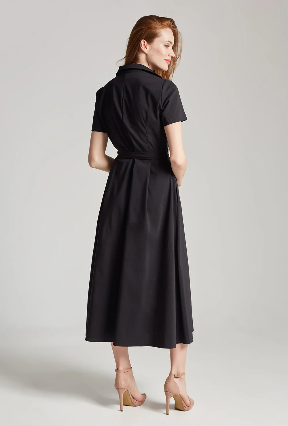 Lubisz fasony, które nie wychodzą z mody i po które można sięgać w różnych sytuacjach? Właśnie tak uniwersalna i ponadczasowa będzie czarna szmizjerka Eden od marki Gatta. To sukienka o długości midi, która jest wymarzoną bazą wielu stylizacji.