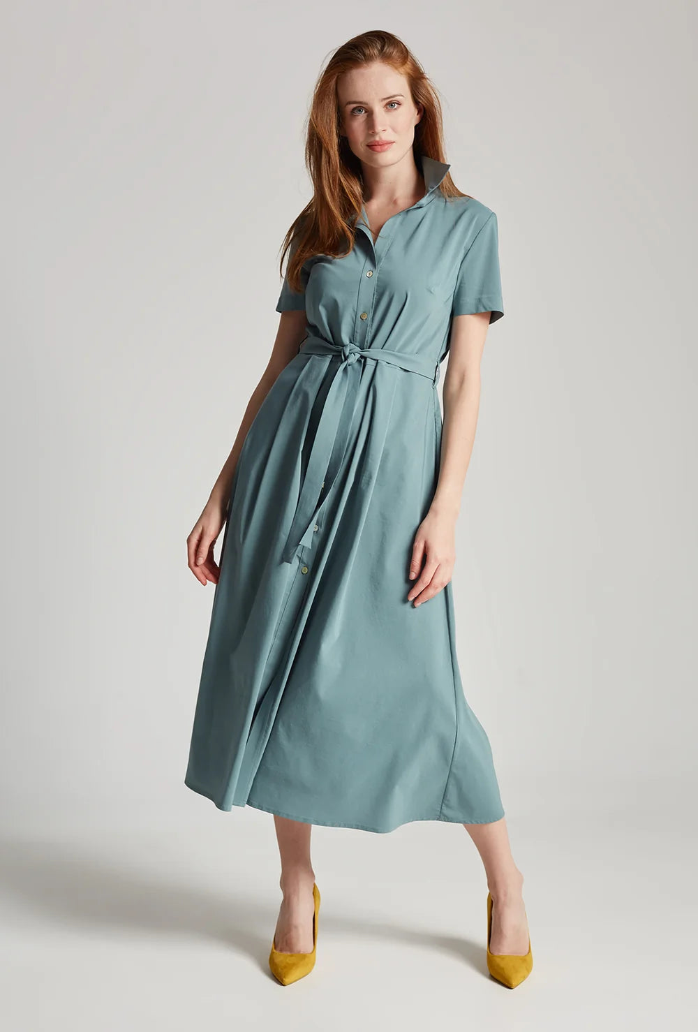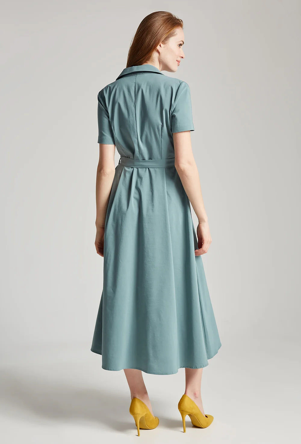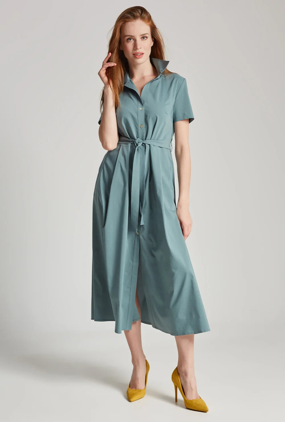 Prosty krój i neutralny kolor to kluczowe cechy tej sukienki. Jest lekko dopasowana u góry i subtelnie rozszerza się ku dołowi. Zapięcie na guziki oraz pasek w talii pozwalają podkreślić sylwetkę, gdy ma się na to ochotę. Krótki rękaw i zgrabny kołnierzyk nadają tej kreacji zarówno lekki, jak i formalny charakter. Sukienkę Eden od marki Gatta możesz nosić do pracy, w sytuacjach codziennych i na specjalne okazje. O jej ostatecznym charakterze zdecydują bowiem buty oraz dodatki, po które sięgniesz.